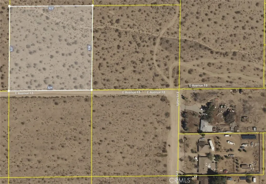 Buildable 2.4 acre land parcel, ready for a custom home! This land parcel has a lot going for it. It sits on Avenue F-8, which means it has direct street access and no need for easements. It is 1 parcel over from a cluster of house, and those houses have power lines (through SoCal Edison) and water lines (through LA County Waterworks) running to them. These utilities can be ran onto this property, which means there is no need for water wells or power generators. There are many ranch homes around this parcel. This parcel is very close to Ave G and 140th St E, both of which are paved streets. This parcel is also very close to the south gate of Edwards AFB. This parcel is the perfect opportunity for someone looking to easily build a custom home or install a mobile home and have lots of room left over for animals/farming, in an area that is secluded but not totally isolated, and without having to deal with a lack of utilities. Great opportunity!