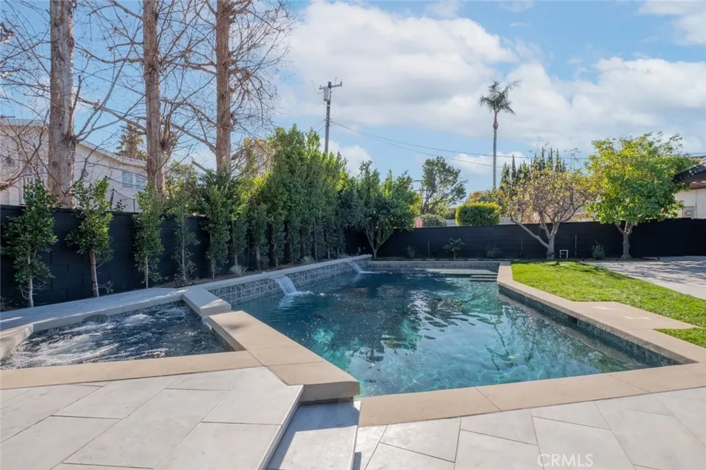 Discover this beautifully remodeled 4-bedroom, 3.5-bathroom home, perfectly situated in the vibrant heart of Encino. Located just moments from the bustling Ventura Boulevard, this residence offers the ideal combination of luxury, convenience, and tranquility in a welcoming neighborhood. Inside, the home features a thoughtfully designed interior with spacious living and dining areas, perfect for entertaining or relaxing. The open-concept layout is enhanced by recessed lighting and abundant natural light, creating a bright and inviting atmosphere. A cozy fireplace adds warmth and charm to the main living area. The kitchen is a chefs dream, featuring high-end appliances, including a six-burner stovetop, an incredible amount of storage, and sleek finishes that combine style and functionality. Each bedroom offers generous closet space, with several featuring walk-in closets, ensuring plenty of room for organization. The outdoor area is designed for relaxation and entertainment, complete with a sparkling pool, a soothing hot tub, and a patio accessible through sliding doors leading from the living space. The fenced front yard and backyard provide privacy and safety, while the driveway and connected garage offer ample parking and storage. This homes prime location near Ventura Boulevard means youre just moments away from the areas best dining, shopping, and entertainment, making it the perfect balance of luxurious living and everyday convenience. Dont miss the opportunity to make this exceptional property your own and enjoy modern living at its finest!