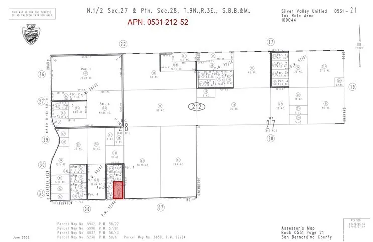 One of 4 adjacent parcels for sale, 3.91 Acres ( APN: 0531-212-52) This wonderful 3 Acres sits along Harvard Rd in Newberry Springs, CA. Newberry Springs is a quaint desert community located in San Bernardino County, California between Interstate 15 and Highway 40 to the east of Barstow, CA. This property lies within the unincorporated area of the San Bernardino County within the 'Rural Living' zoning. This Rural Living zone can be subdivided into 5 acre parcels. Rural Living allows for Single Family homes, Manufactured homes, accessory crop production, produce stand and agritourism enterprises, animal keeping, livestock operations, school, place of worship, park or playground, Bed & Breakfast and small residential care facilities. Overhead electricity is ONSITE along Fairview Rd. Residents in the area have private water wells for their water needs, septic tanks for their sewer needs and propane tanks for their gas needs. Adjacent parcels are also for sale, a total of 16 acres is available. Newberry Springs is known for its serene and picturesque landscapes, it offers a peaceful escape from the bustling city life. The area is famous for the mesmerizing views of the Mojave Desert, showcasing stunning sunsets and starry nights that attract stargazers and nature enthusiasts alike. With its unique blend of rustic charm and natural beauty, Newberry Springs offers a tranquil retreat for those seeking a genuine desert experience. Address is an approximation only (for marketing purposes) and has not been assigned to the property. This property does not yet have an address, the addr