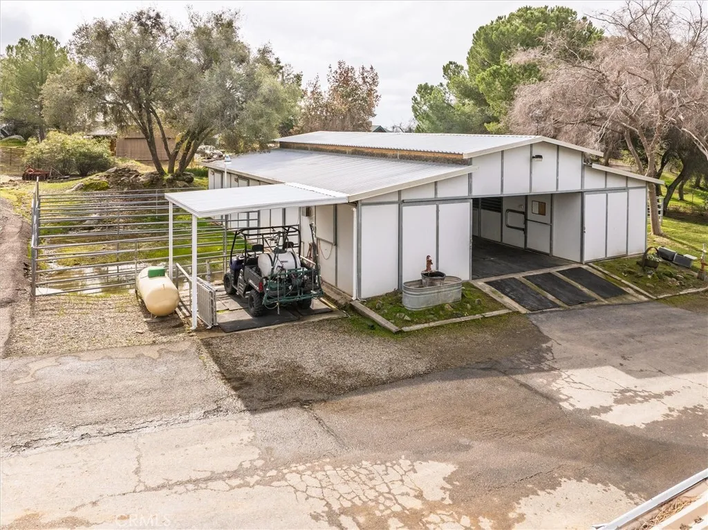 This horse property has so much to offer, you really need to watch the virtual tour to discover all of the amazing amenities! From the automatic gated entry, paved driveway, past the riding arena, the barns and up to the home with a pool, you'll be impressed! The horse set up features a large riding arena equipped w/lights & dedicated water storage w/sprinklers. There is a huge hay barn which can also be used for parking your horse trailer or RV and has 50 amp service. The 6 stall steel barn includes runs, 2 wash racks (w/on-demand water heater,) 2 master cool units ducted to each stall, auto fly sprayer, lights w/timers, tack room & feed room. The property features lush lawns and an updated home. The updates include; a 3 yr old roof, updated windows and sliders, updated PEX piping, beautiful vinyl siding (fire & woodpecker resistant,) 10 yr old HVAC, tile flooring, granite counters/showers, stainless appliances & so much more! Fenced, cross fenced, storage galore and a solar system!