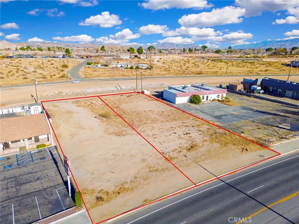 TWO LOTS next to each other are zoned C-1 (Commercial) and are for sale in an established commercial area. This location is right next to the freeway and is well established with other commercial operations near by. Interstate 15 freeway access is ideal. Topography is generally flat. City of Victorville, San Bernardino County. Seller has not investigated combining the lots, however it appears others in the area have done so for larger buildings and developments. Other easy access is Hwy 395 to the West, I-40 to the N. Check out the location, very central with great freeway access, as well as highway and other thoroughfares. Utilities are already established in the area with an existing commercial building next door. Curb and gutter already there, city of Victorville water available. Utility easement at rear, does not impact use or access of properties - easily visible see overhead map. Low tax rate in this area also.