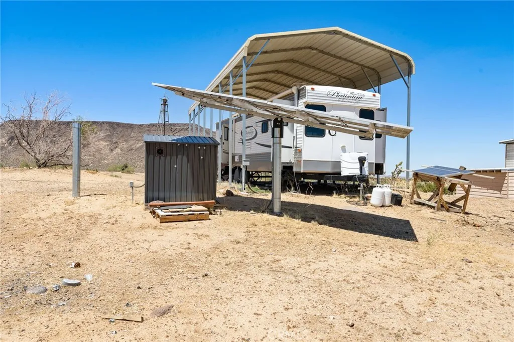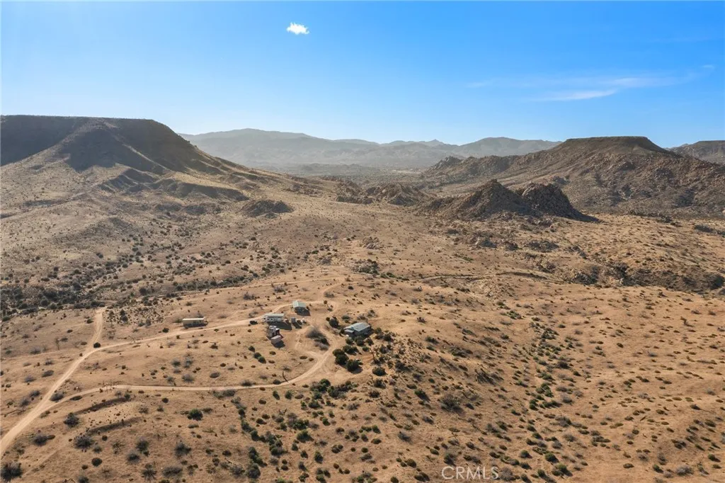 Welcome to Scorpion Ranchthe most magical 20-acre parcel in the coveted Pipes Canyon area, nestled against the protected Sand to Snow Monument Park land conservancy. Step right into nature with direct access to scenic hikes, iconic boulder formations, and breathtaking 360-degree views surrounded by Joshua trees. This is one of the most desirable areas in the High Desert, conveniently located near Joshua Tree, Yucca Valley, Pioneertown, La Copine, and the historic Giant Rock Meeting Room. Big Bear is also within easy reach, offering year-round adventure and escape. The property features an RV fully hooked up to septic and a solar system, making it a comfortable off-grid base while you plan or build your dream home. Also included are a container home, a storage container, and multiple structures that spark creativity and offer limitless potential. Scorpio Ranch also has a non-operational well that could potentially be restored, along with two water tanks, providing valuable options for future water access. Overlooking Pipes Canyon and offering total seclusion, Scorpion Ranch is a rare opportunity to own a stunning slice of the High Desertideal for a personal sanctuary, creative retreat, or future homestead.