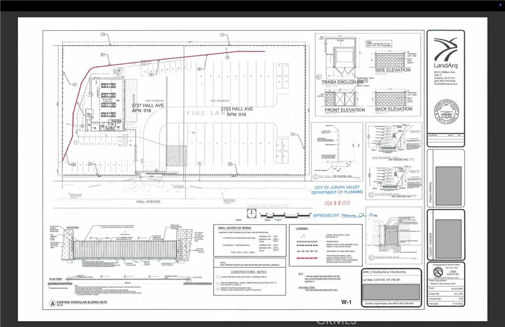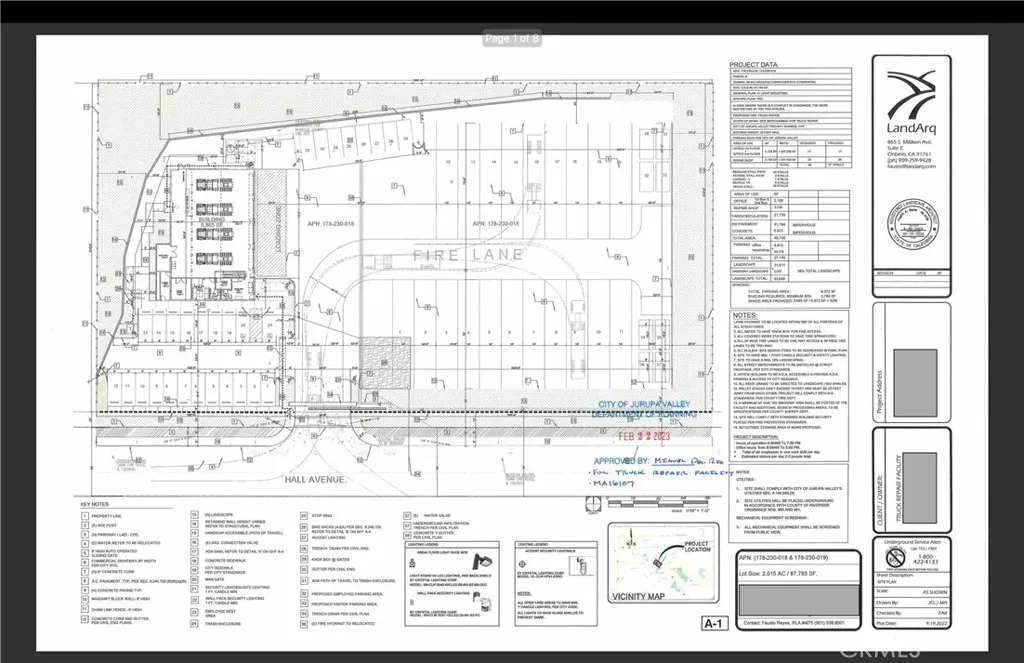 An amazing opportunity to own 2.02 Acres of Entitled Land with Approved and Permitted Plans. The property is a Manufacture - Service - Commercial zoned 2.02 Acre lot with utilities and approved plans for a Trucking Service Building. This was designed, planned and permitted for up to 20 full size Big Rigs and Trailers, in addition to 21 front tractor units - as well as a 5,685 sqft Service building that can have 4 tractor units worked on at once. In addition, it was also planned for a 896 sqft office, meeting room, Full Bathroom and break area on the second floor. This lot consists of two parcel APN's (#178-230-019 and #178-230-018), very near the 60 freeway and a few miles from the 91 freeway and 215 freeway. Please view the attached documentation(pictures) and reach listing agents with any other questions in regards to zoning, plans and permits.