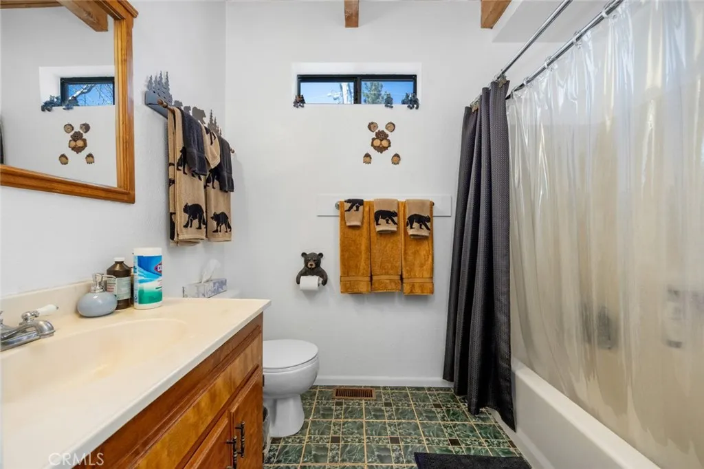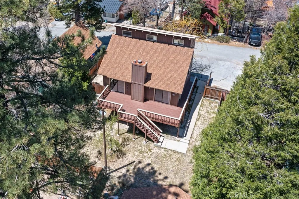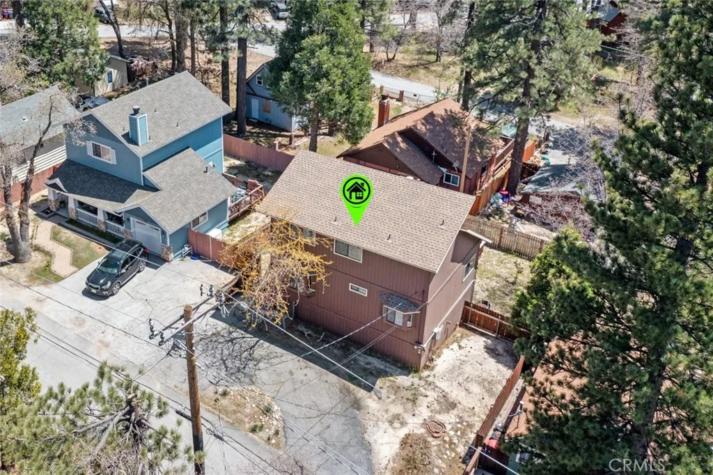 Discover the perfect blend of natural beauty and comfort at this exquisite family cabin, featuring a private fully fenced yard. Situated in Arrow Bear, the property is mere minutes from hiking trails, a mountain bike park, and Snow Valley Ski Resort. Occupying a substantial 5400 Sqft lot, the cabin boasts two generously sized bedrooms and two bathrooms. The interior is distinguished by a soaring vaulted ceiling, custom windows, beautiful carpeted floors, and a cozy family room with a fireplace, all filled with an abundance of natural light. The expansive patio deck provides a romantic ambiance, overlooking a peaceful and charming backyard. Envied by many, the spacious basement is truly stunning, has the potential to be the ultimate work shop.