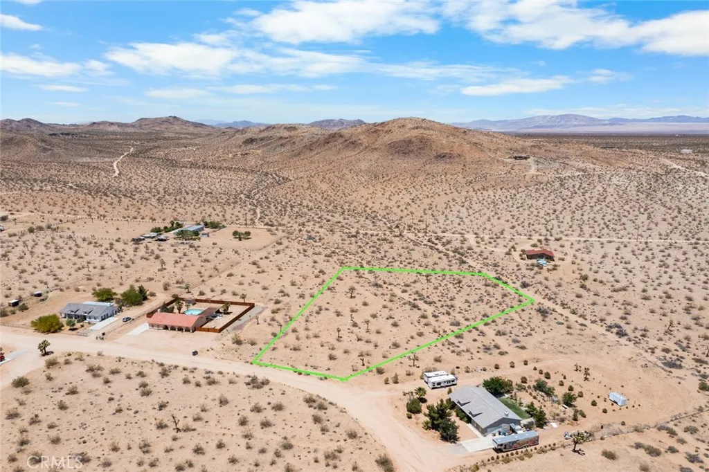 A great lot in a very desirable part of North Joshua tree. Water and power in the street. This lot sits an a neighborhood of large custom homes and is well suited for one as well. Visually framed by mountains in almost every direction, including the mountains of the national park to the south. Easy access from Aberdeen on well groomed unpaved roads. The lot is flat and very buildable, with just enough Joshua trees scattered around the property for interest, but not so many that it would complicate constructions plans. Minutes to the Joshua Tree Village, the national park entrance and shopping yet it feels like you're out in the wilds of the Mojave Desert. Because you are!