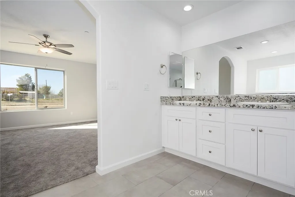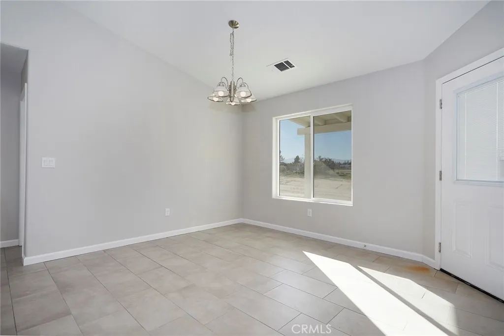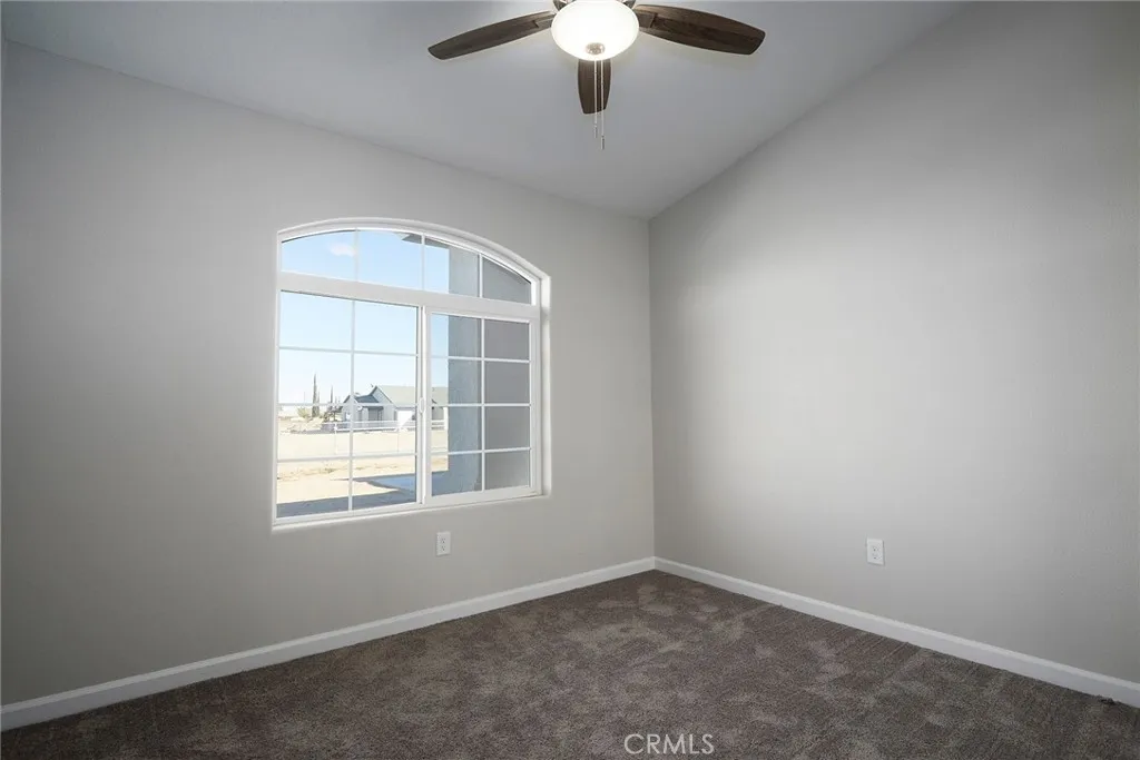 CHECK OUT THIS IMPRESSIVE NEW CONSTRUCTION HOME IN HESPERIA! This home offers approximately 2100 SF of amazing living space. Enjoy your kitchen with solid surface counters, functional cabinets, large pantry, center island and modern appliances. The gathering area is spacious and inviting. The split floorplan offers a comfortable feel with the main bedroom on one side of the house and with a bathroom to include dual sinks, separate tub and shower. The other bedrooms are off the hallway and are adequate in size and share a bathroom. Next to the indoor Laundry is also a half bath that is great for guests. There is a total of 4 Bedrooms and 2 Bathrooms. Also, there is plenty of parking in the 3 car garage. Enjoy the desert weather under the covered patio overlooking a large lot, approx 1.6 acres. Solar panels that are owned are included and installed at the minimum standards. Take a look at this Amazing Home!