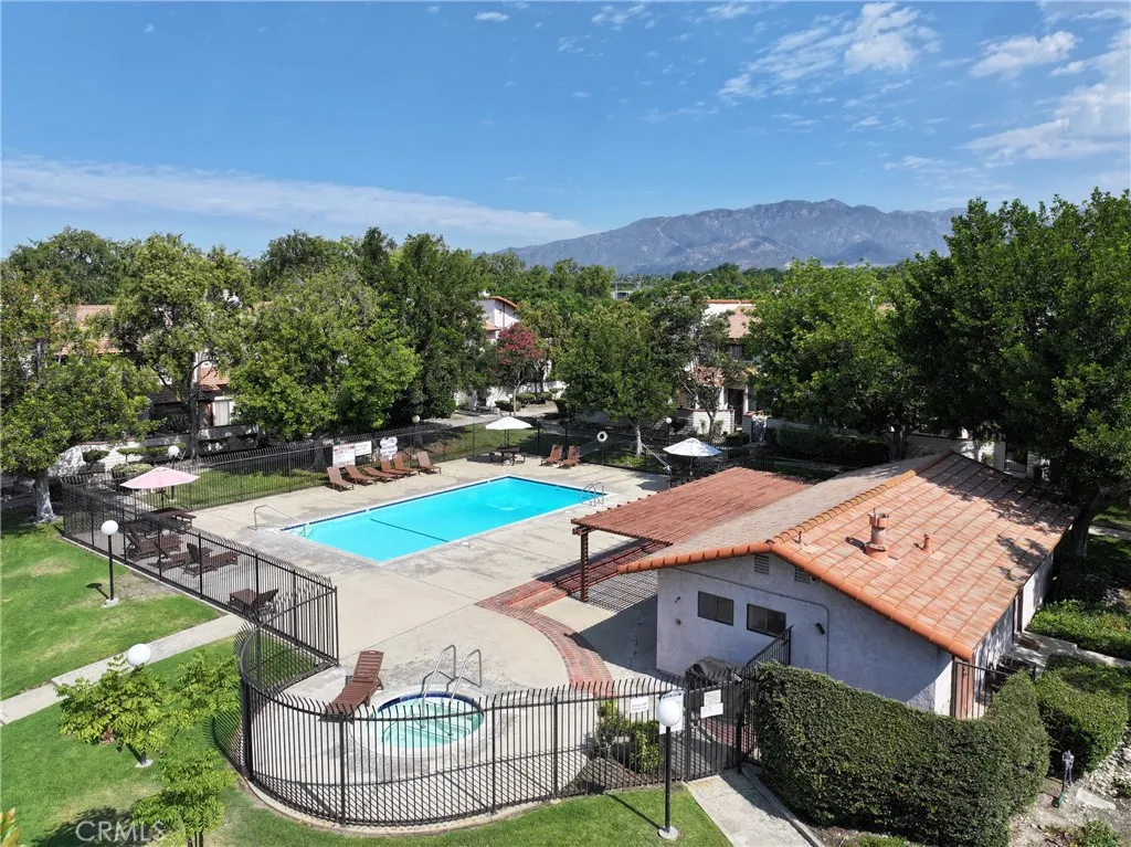 Welcome home to this beautiful, move-in ready townhome/condo that has lovely mountain & pool view. Desirable Park Hacienda community in Upland. FHA & VA buyers are welcomed. This two-story townhome has approximately 1,464 square feet of living space, 3 bedrooms & 2.5 bathrooms with the half bath downstairs for convenience. This lovely townhome is ready for your personal touch. Features: fenced-in nice size front patio area with a gate leads you to the front door, bright, light & airy floor plan with tile entryway, brand new carpeting throughout, fresh interior paint, new blinds, New Stove,ceiling fans & more! Lovely formal living room with a fireplace. Cozy kitchen with new refrigerator & new stove. Kitchen opens to large nook/dining area. A generous primary suite features walk-in closet & primary bathroom. Attached, finished 2 car garage with direct access & metal garage door. Tile roof. Association Includes: sparkling pool, spa, tennis/pickle ball court, club house, water, trash, pet friendly, ample guest parking & maintenance of community greenbelts grounds with some picnic area & lovely walkways. Upland Unified School District. This property is conveniently located close to parks, schools, shopping centers, grocery stores, Colonies Crossroad center that also offers more shopping & restaurants. Plus commuter friendly with 210 & 10 freeway near-by PLUS added bonus of the Metro Link station in the downtown Upland Village area. Hurry, this townhome will not last!
