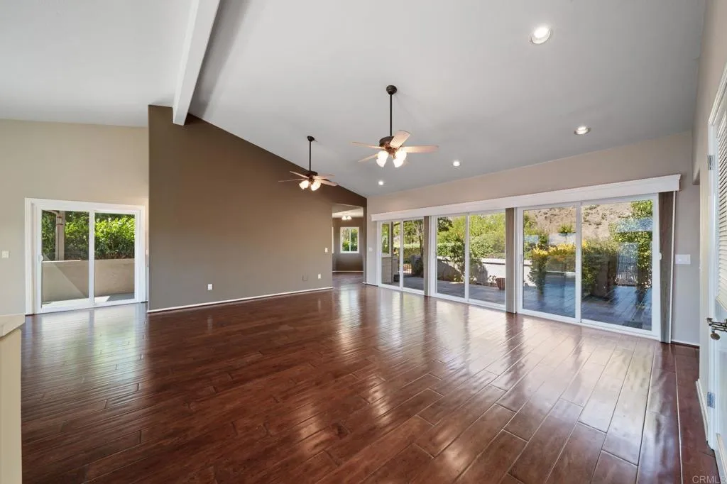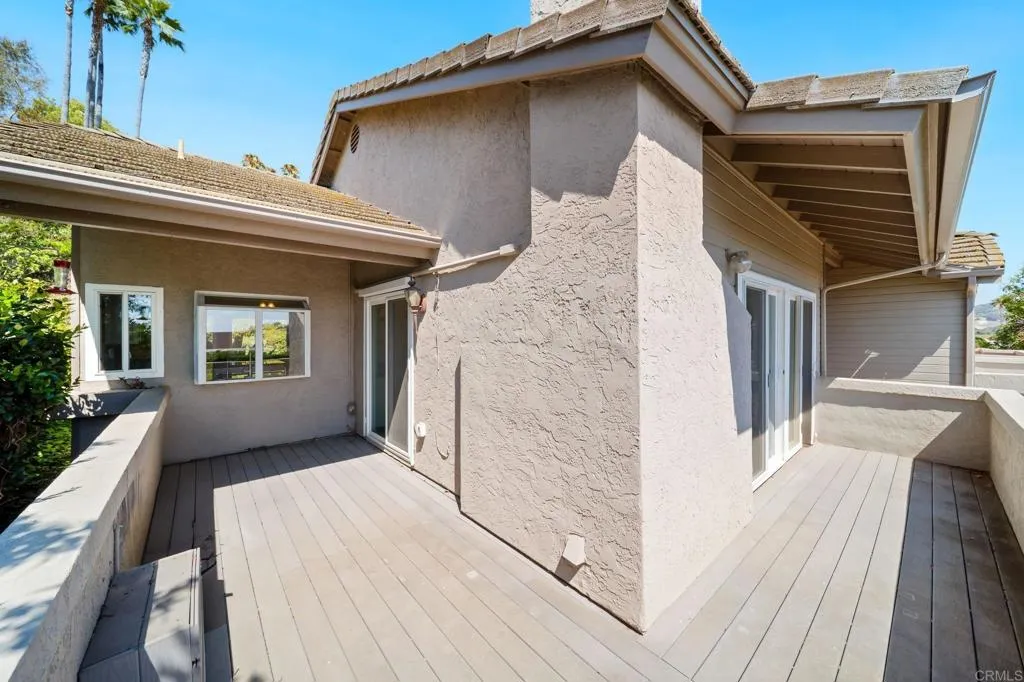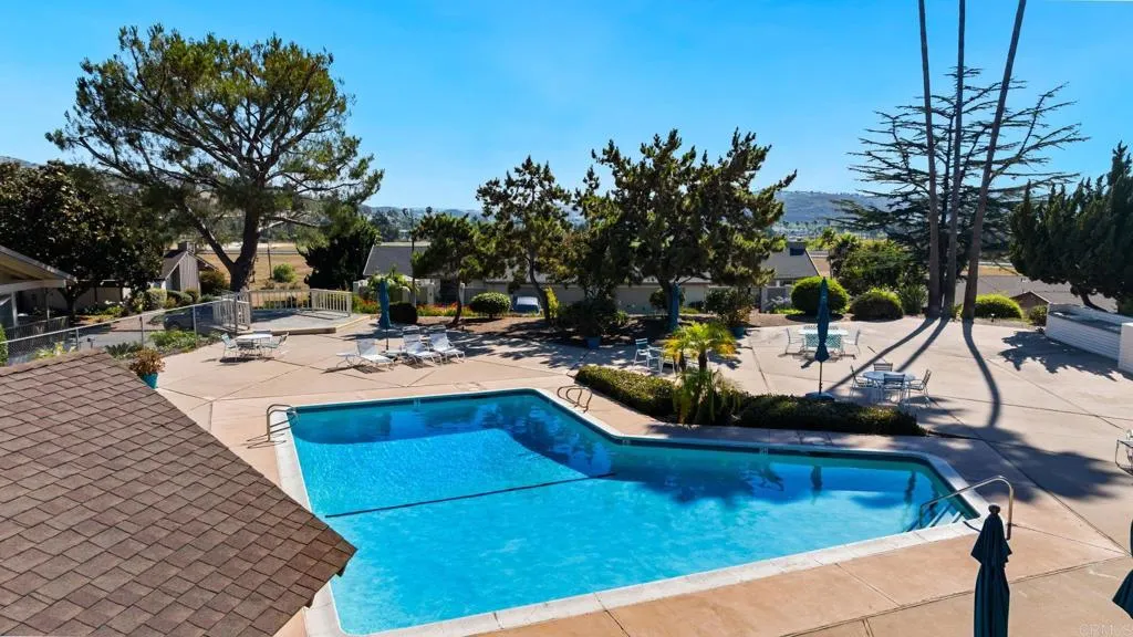 This move-in ready home is located in the gated Terrace Downs community in Bonsall, CA. Enjoy privacy, beautifully maintained grounds, a community pool, and proximity to River Village shopping and top-rated Bonsall schools. The open floor plan features vaulted ceilings, a spacious living room with fireplace, and a south-facing composite deck perfect for relaxing or entertaining. The stylish and functional kitchen includes granite countertops, wood flooring, recessed lighting, pull-out shelving, and a bright breakfast nook with scenic views. The dining area opens to a private stone patio with a retractable awning. The primary suite offers a walk-in closet, en-suite bath with skylight, soaking tub, and large shower. Two additional bedrooms are located on the opposite side of the home. All bedrooms have new carpet, and both bathrooms feature updated toilets. HOA covers yard and exterior maintenance, irrigation water, roof, gated security, and pool access. Though the home lives like a single story, there are stairs from the garage or driveway to the main level. No age restrictions. This well-maintained home blends comfort, convenience, and the beauty of Bonsall living. Note: Some photos have been virtually staged for marketing purposes.