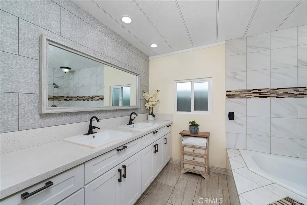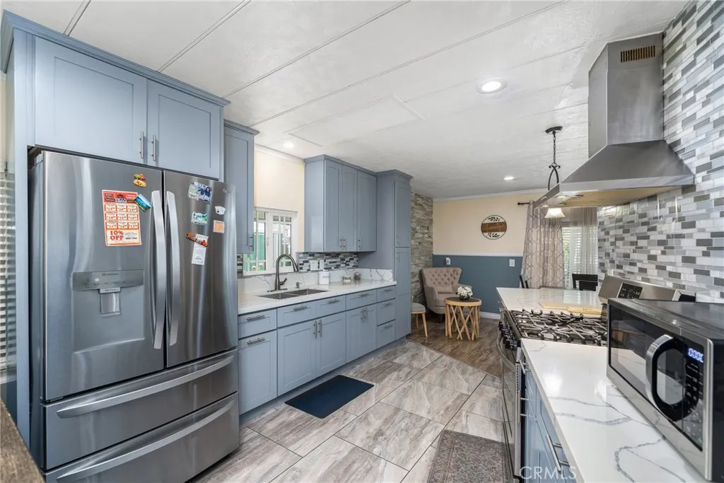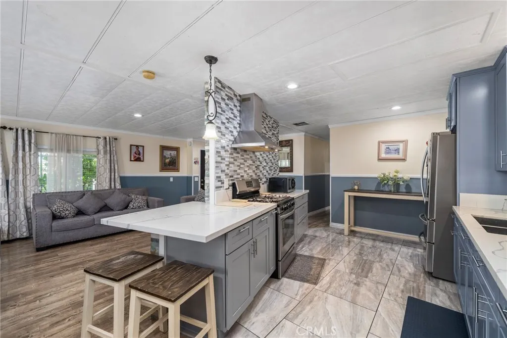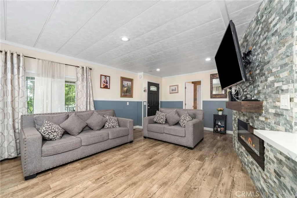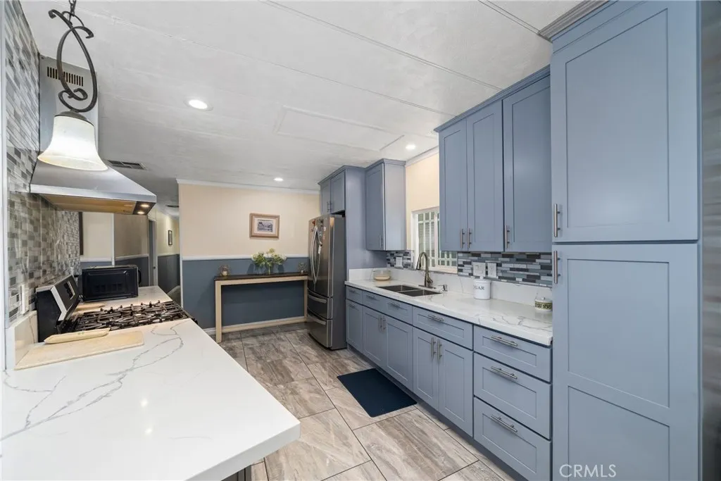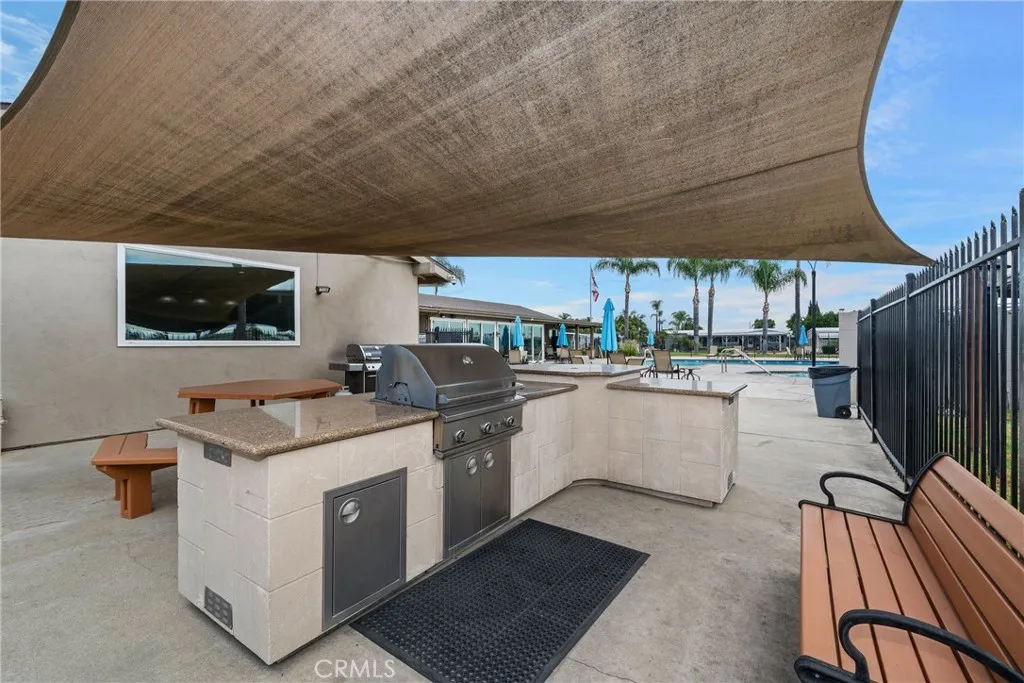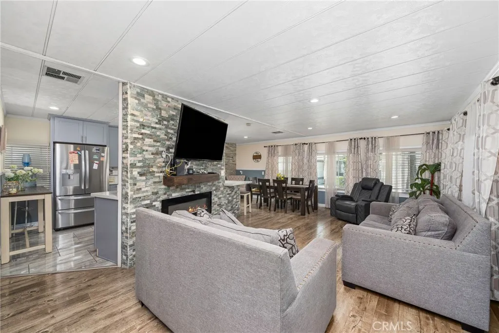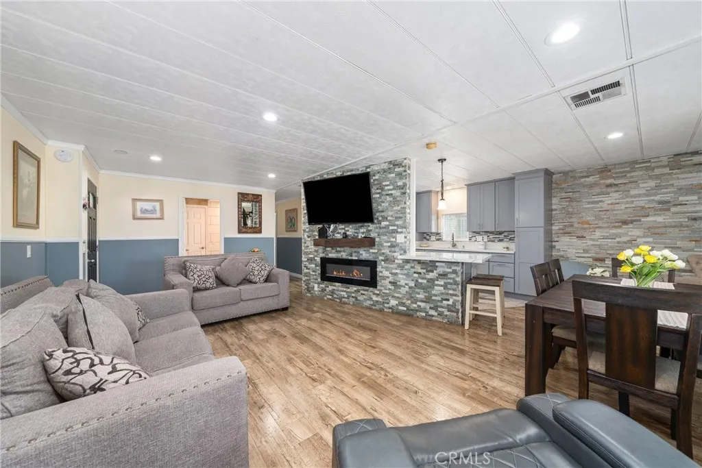 Spectacular Fully Remodeled Home in the Gated PEMBROKE DOWNS Community. Welcome to this beautifully renovated residence located in the highly desirable Pembroke Downs, one of the few all-ages gated communities with exceptionally low space rent. Perfectly situated on a premier corner lot, this home offers privacy, lush landscaping, and an entertainers dream outdoor living space complete with a cabana-style BBQ patio. Every detail of this home has been thoughtfully updated inside and out. The exterior showcases professional landscaping designed as a tropical retreat, featuring mature palm trees, vibrant rose gardens, lemon, orange, and persimmon trees, a brick-lined pathway, artificial turf, vegetable garden, a new storage shed, and a spacious open backyard. A large, covered front porch with slate tile flooring, stacked stone accents, and privacy trees provides the perfect setting for outdoor lounging. Step inside and experience the inviting, fully remodeled interior. Highlights include: Open living space with laminate flooring throughout, recessed lighting, a designer stacked stone accent wall, and built-in electric fireplace with media-ready space. Upgraded dual-pane windows allowing abundant natural light. Chefs kitchen with custom cabinetry, quartz countertops, full-height backsplash, stainless steel appliances, and an extended breakfast nook. Cozy sitting area and formal dining room designed for intimate gatherings. The oversized primary suite is a true retreat with a large closet, built-in cabinetry, and a luxurious en-suite bathroom featuring quartz countertops, dual s