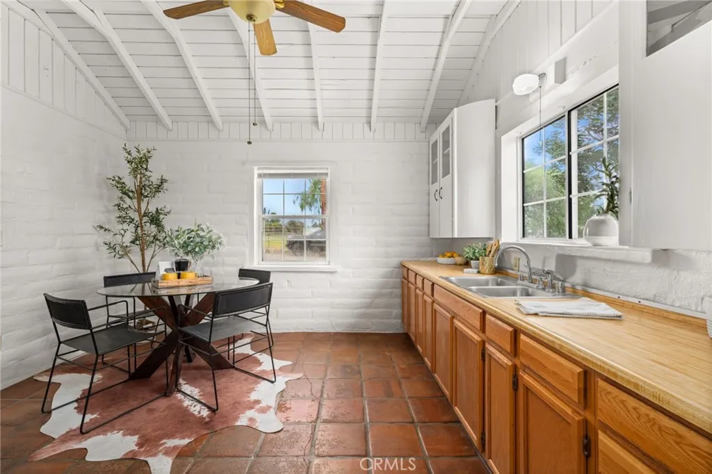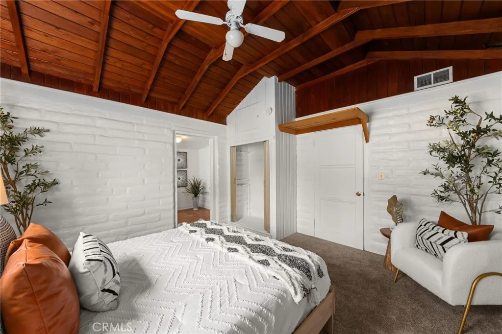 Price improvement! Single story home with a detached garage on a .25 acre flat lot with alley access! Located less than .5 miles from Uptown Yucaipa classics like White Rabbit Coffee and Brewcaipa, this home is an excellent example of classic Yucaipa charm in a great location. Enter through the front screened porch into the living room, where you'll find plenty of natural light and vaulted ceilings with exposed beams. A sizable bedroom has direct access to the full bathroom. The large kitchen features eat in dining. A smaller bedroom off to the side would also make a great home office. Heading out back, you'll find access to a sizable cellar - perfect for long term storage. There is a detached one car garage as well. The sizable, flat lot has great alley access. Great potential to build a large garage or shop, or even an ADU with it's own access! The home has new carpets throughout and fresh interior paint.