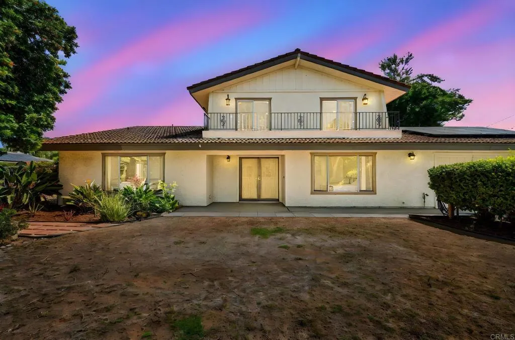 Wake up to breathtaking mountain sunrises, ocean views, and unwind at this hilltop retreat in Vista. This 5-bed, 5-bath, nearly 3,000 sq ft home sits on almost a full acre, offering a rare blend of privacy, space, and panoramic views. Inside, the open, light-filled layout features a versatile floor plan with 3 bedrooms upstairs and 2 bedrooms downstairs, an additional converted garage bedroom and full bathroom, and dining room that can convert to an additional bedroomperfect for multi-generational living, guest quarters, or a home office. A detached structure provides additional potential for a studio, gym, or creative space. The outdoor areas are just as impressive. Tiered landscaping, mature trees, and multiple patio spaces create the ideal setting for entertaining, gardening, or relaxing in total seclusion. With over 40 leased solar panels, your energy bills can stay low while your lifestyle stays big. Located in a quiet neighborhood with a peaceful countryside feel-yet just minutes from shopping, dining, schools, and the coast-this property offers the best of both worlds. Property highlights include panoramic mountain and ocean views, 5 bedrooms with 2 additional bedrooms on bottom floor / 5 full bathrooms, detached bonus structure, nearly 1 acre of landscaped, tiered outdoor space, fully owned solar system (40+ panels), flexible multi-level layout for guests or extended family, peaceful location minutes from amenities and beaches, and tiered landscaping perfect for an additional ADU or RV Parking. Experience the beauty, privacy, and potential of 326 Sunrise Circle in p