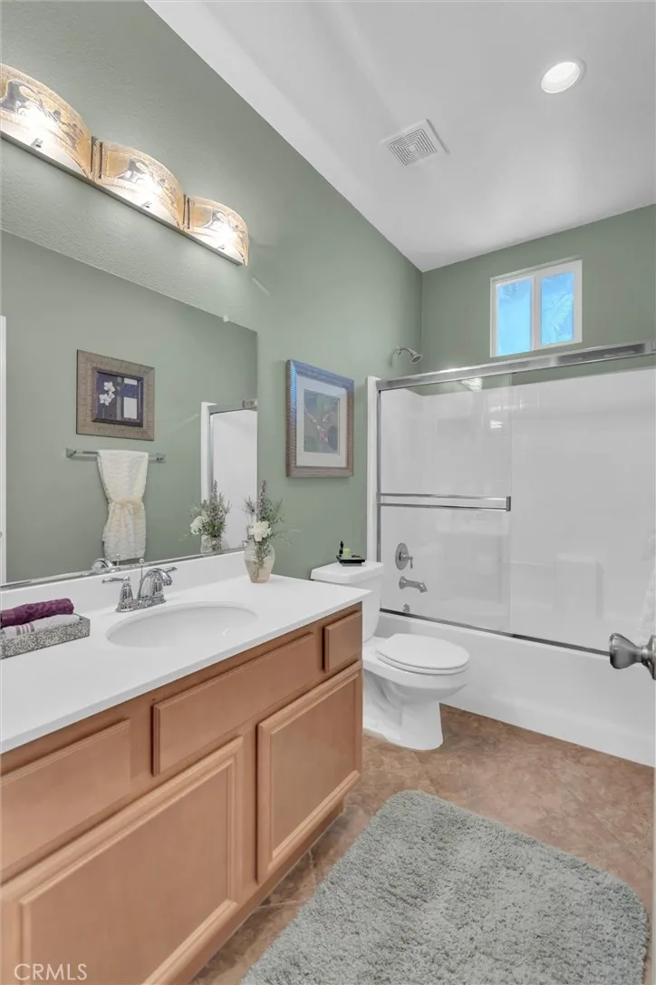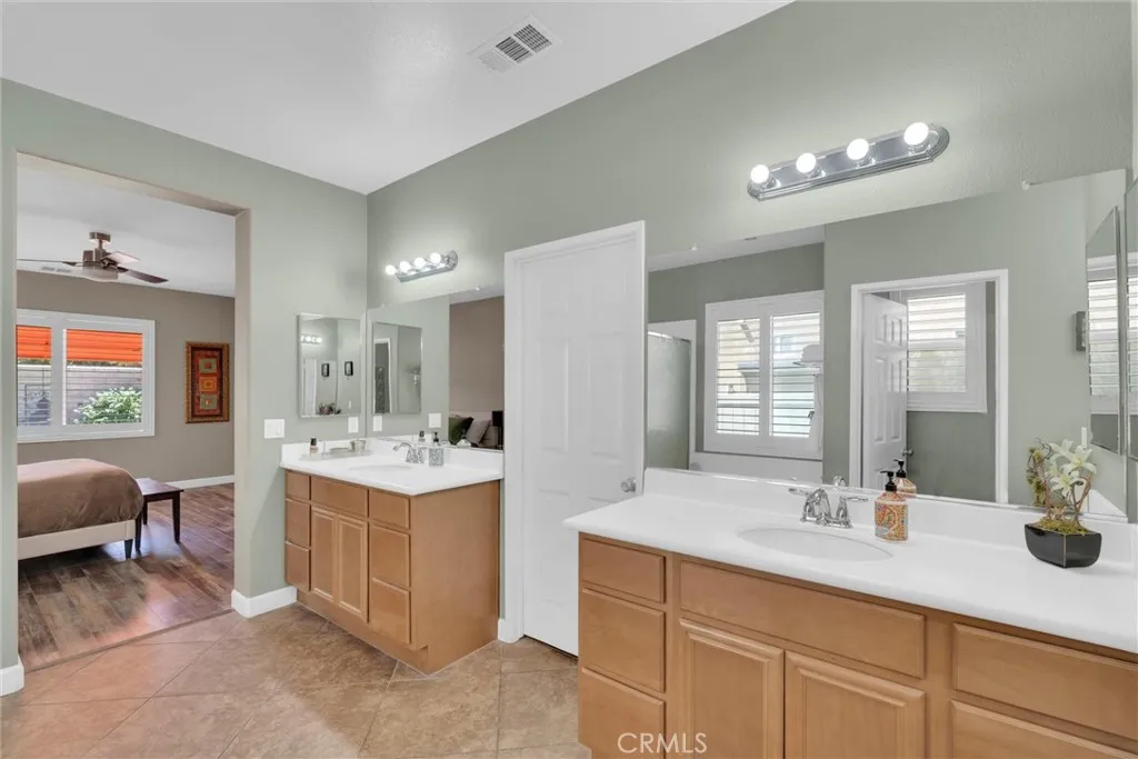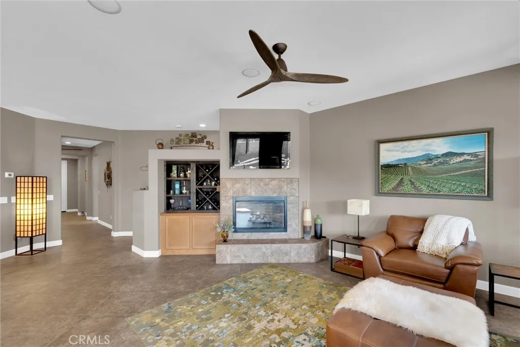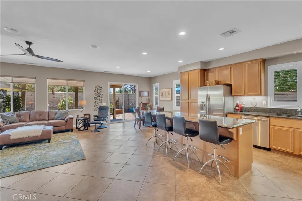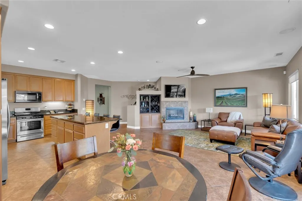 Popular single-story home on a Corner Lot with Open Floorplan. No rear neighbors! 3 Spacious bedrooms & 2 bathrooms. This home is in pristine condition and shows true pride of ownership. Enter through a lengthy hallway with high ceilings that opens up to the Open Great Room. The beautiful gourmet kitchen features generous cabinets, a large island ,stainless steel appliances, and granite countertops. New 2025 Stove, Garbage disposal and Water Heater! Spacious open Great Room with surround sound system & cozy fireplace with raised hearth is the perfect place to entertain. Primary suite is on one side of the home, separating you from the other 2 bedrooms. Primary bathroom with a Separate walk in shower and soaking tub, generous walk-in closet and dual sinks & vanity! There is also a huge walk in closet! Secondary bedrooms are large , one featuring a Barn Door entrance! Additional features include an Indoor Laundry room with storage cabinets, Plantation Shutters, Ceiling Fans and beautiful oversized 20" tile flooring throughout the living spaces. Laminate flooring in bedrooms. Outside, the backyard features a fully landscaped, low maintenance yard with no rear neighbors! Pick your own fruit from the lemon & lime trees! Large covered alumawood patio cover, with custom hardscape, and show stopper built in fire pit with fire glass. Block wall fencing, with vinyl fencing on one side. Extra large 2 1/2 car garage! Located in the award-winning Temecula school district, in the Dutch Village neighborhood near sports parks, playgrounds, walking trails and shopping, this home has it all!