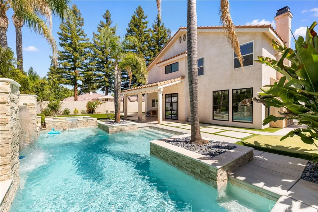 Discover refined living at 1001 Sungro Way, located in the prestigious and serene Seven Oaks Estates community. This quiet, high-end neighborhood is one of Bakersfields most desirable areas, offering both exclusivity and convenience. Families will appreciate being within walking distance of top-rated schools including Ronald Reagan Elementary, Earl Warren Junior High, and Stockdale High. This beautifully renovated home showcases 4 spacious bedrooms, 3 full bathrooms, and approximately 3,466 sq. ft. of elegant living space on a 10,018 sq. ft. lot. Every detail has been thoughtfully updated from fresh finishes and designer lighting, including a statement chandelier, to the seamless blend of modern upgrades and timeless style. The chefs kitchen shines with granite counters, a large island, and new cabinetry, opening to the family room with soaring ceilings and a cozy fireplace. The formal dining room and living room create the perfect flow for entertaining, and the impressive entryway features a 22-foot-high ceiling, adding a dramatic sense of openness and luxury. Retreat to the luxurious primary suite, complete with fireplace, sitting area, and a spa-inspired bathroom featuring a soaking tub, steam shower, and custom upgrades. Secondary bedrooms are generously sized, with one currently configured as a media/game room. The expansive upstairs bedroom can be easily converted into two separate rooms, providing the flexibility for a fifth bedroom if desired. Step outside to your private backyard oasis a newly remodeled pool and spa with waterfall feature, putting green, and expa