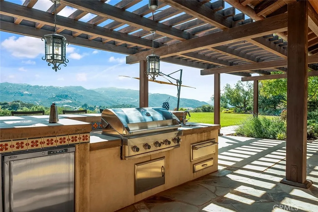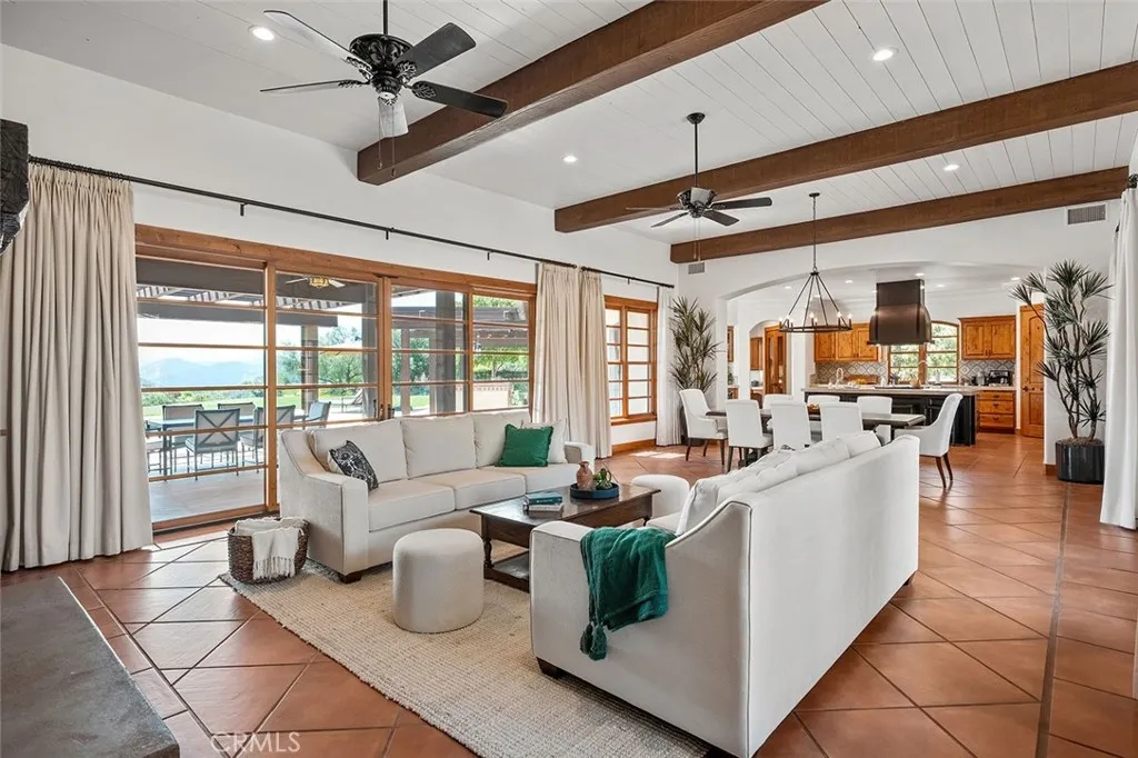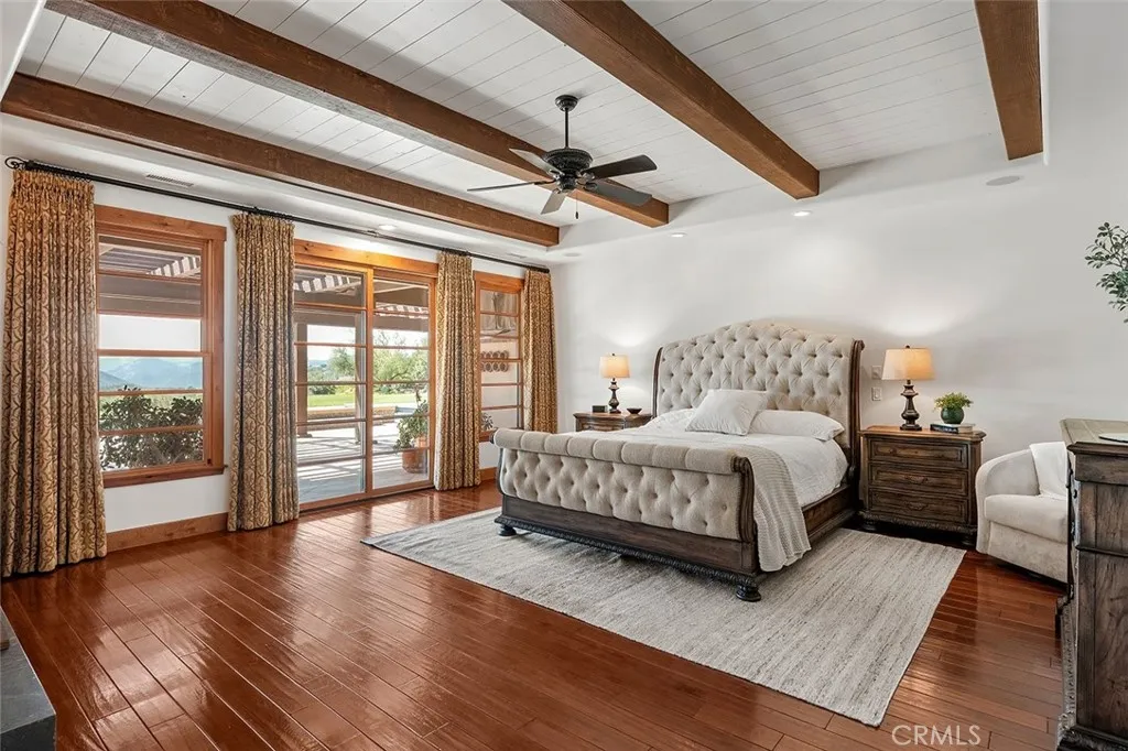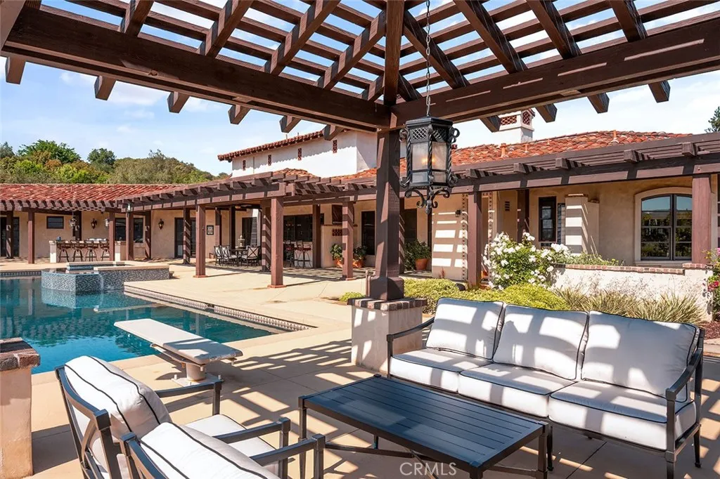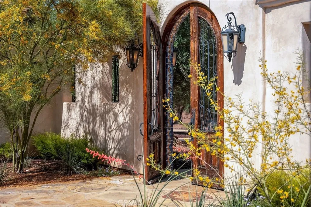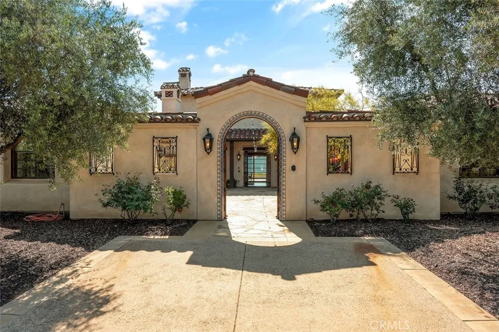 Welcome to HARMONY RANCH A SANCTUARYAND CROWN JEWEL OF THE SANTA ROSA PLATEAU! Masterpieces with these amenities are not only unique in this marketplace, but only rarely come to market. To build this exquisite estate again would require years in the creative process, lengthy custom construction, expansive usable land with panoramic views, and would cost millions over this asking price! Lived in very gently since its inception, it is available now to the most discriminating buyers. THIS IS A LIFESTYLE!From the moment you enter the security gate, the ambiance of 28+ private acres envelopes you, leading you on a peaceful journey past mature landscaping, equestrian pastures, a custom expandable 4-stall barn, half bath, chicken coop with AC & lighted arena to the exquisite 5-BD single-story Mediterranean home, flanked by mature olive trees and adorned with an authentic courtyard with Spanish-tiled fireplace, fountain & covered seating. Drive further to find a charming vineyard, prolific & diverse orchard & second access gate. Step inside the luxurious estate to find upscale details throughout, including high-end flooring, quality custom windows & doors, top-of-the-line appliances, Taj Majal Quartzite counters, designer fixtures, beamed ceilings, recently installed wifi indoor/outdoor sound system, wifi thermostats & security, 2 primary suites each with exterior access and one with a fireplace, soaking tub with view, steam shower & additional outdoor half bathroom/shower. The 2 garages with fresh epoxy flooring provide room for 5 cars, plus workspaces. Entertain in the stylish