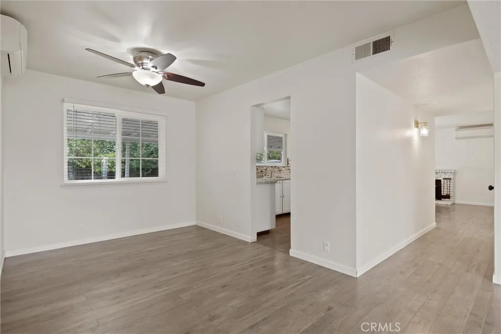 Move-in ready with style and comfort. Step inside this beautifully updated home and be greeted by a soaring vaulted ceiling living room that flows seamlessly into the dining area, perfect for gatherings and everyday living. With two separate living spaces, youll have room to spread out. One of them opens directly to the kitchen and features a cozy wood-burning fireplace, making it the heart of the home. The kitchen shines with upgrades, including newer Kitchen countertops and backsplash, large windows looking out to the beautiful backyard. Step outside to a spacious covered patio ideal for entertaining, surrounded by automatic sprinklers, lush landscaping, and a backyard designed for relaxation. This home has been thoughtfully modernized with new LVP flooring throughout, updated bathrooms, central heat and air, plus four mini-splits to individually control each rooms comfort while saving on your electric bill. With all the updates and charm, this property truly is a must-seemove-in ready and waiting for you to call it home.