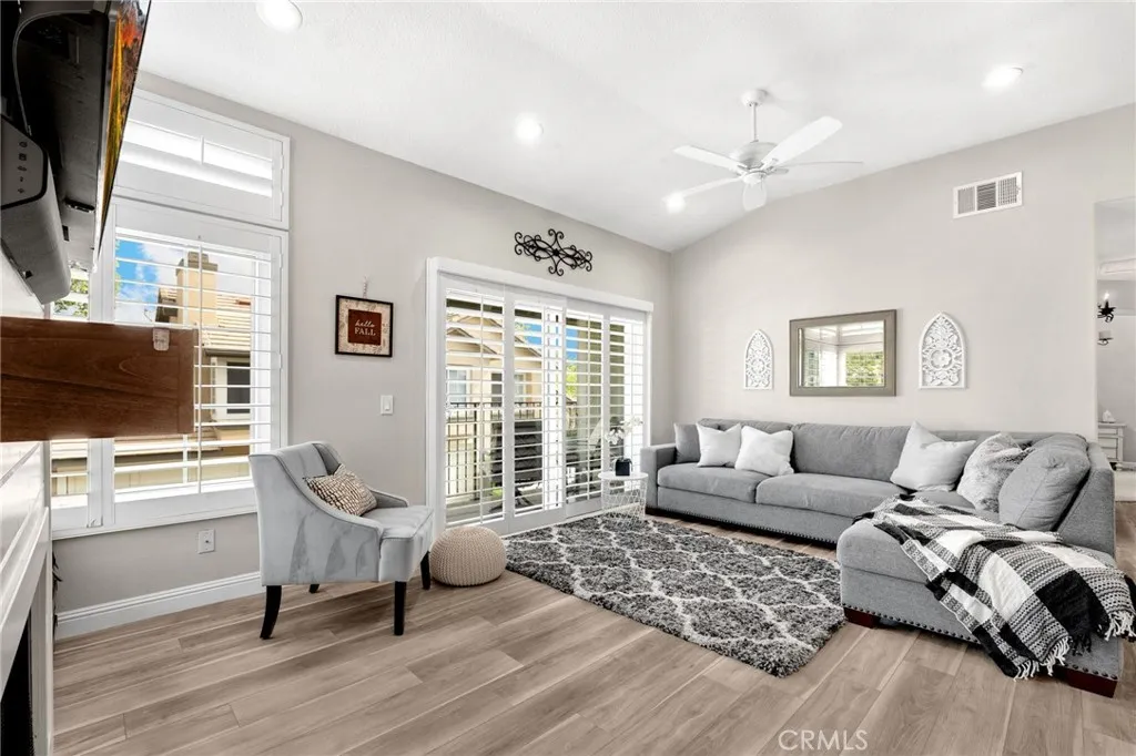 Beautifully Updated Condo in Desirable Anaheim Hills! Welcome to this tastefully updated single-story, two-bedroom, two-bath condo situated above its own two-car garage in the sought-after Laurelwood community of Anaheim Hills. Positioned toward the back of the neighborhood, this home offers a peaceful setting away from street noise while still close to shopping, dining, and entertainment. Step inside to discover a bright, open living space featuring laminate flooring throughout, newer carpet in the bedrooms, recessed lighting, and dual-pane windows for year-round comfort and efficiency. The inviting living room centers around a cozy fireplace accented with shiplap and a charming mantle, creating the perfect space to relax or entertain. This desirable floor planrarely available on the marketboasts two private balconies off the living room and has just been enhanced with a brand-new AC system. The renovated kitchen is a true showpiece, thoughtfully redesigned by the owner with custom storage solutions, crisp white cabinetry, quartz countertops, and a convenient breakfast bar. The spacious primary suite offers dual closets and a beautifully upgraded ensuite bathroom, while the secondary bedroom and bath provide ideal space for guests, family, or a home office. The attached two-car garage includes ample built-in storage cabinets, and the home is conveniently located within walking distance to one of the two sparkling community pools. With abundant guest parking and a prime Anaheim Hills location, this move-in-ready home perfectly blends modern upgrades, thoughtful design, and