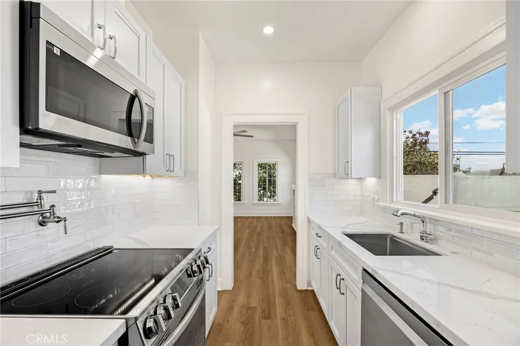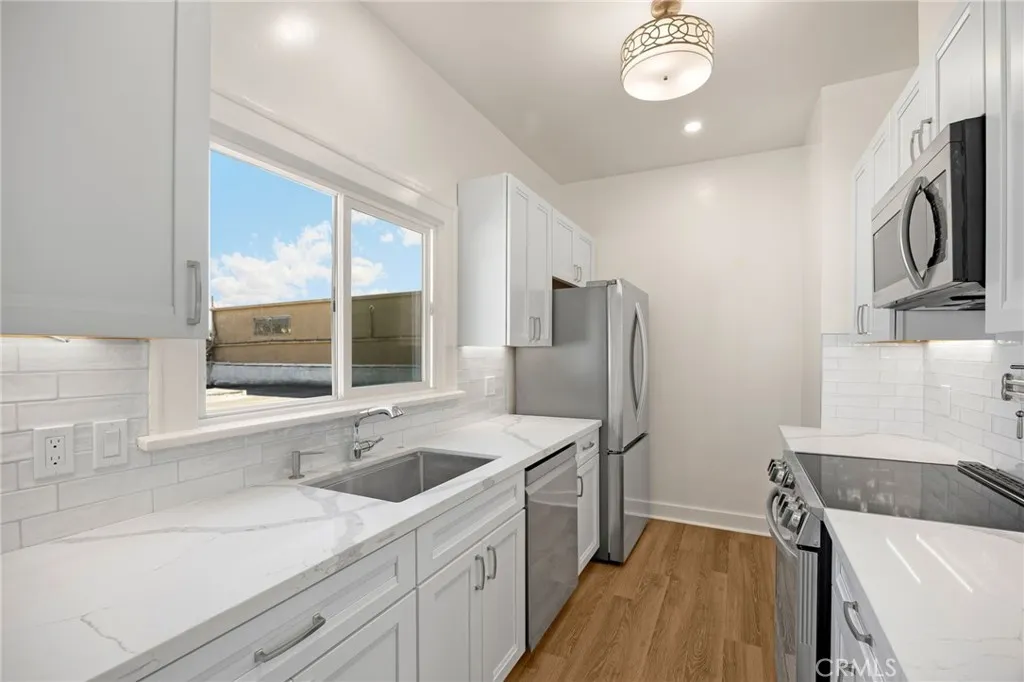 A Long Beach Gem! FULLY remodeled beautiful 1924 Mediterranean unit, where timeless charm meets modern day luxury and state of the art features, all in one of Long Beach's most vibrant neighborhoods! Nearly 600 sqft of exquisitely renovated living space. Comfortable open floor plan w/spacious living/dining area w/high ceilings bathed in natural light from the large windows; treetop view gives a fresh feel, added shade & privacy, new ceiling fan, new mini split HVAC, for ambiance & added heat source, a cozy faux fireplace ready to relax, wind-down and sip some tea, read a book or enjoy a glass of wine! There is an outlet set up ready to install a TV and a large walk-in closet for storage! Stunning modern completely remodeled bright kitchen is a chef's delight! NEW state of the art energy efficient stainless-steel appliances includes an induction range with a pot filler faucet above, refrigerator w/ice maker, dishwasher, microwave. New sleek quartz countertops, high-quality cabinets w/self-closing drawers & ample storage with under cabinet lighting, deep stainless-steel sink w/accessories, dimming recessed lighting & light fixture compliment the entire kitchen. Spacious bedroom can accommodate a queen size bed, large windows, ceiling fan offering a choice of natural lighting modes, mini split HVAC system & large walk-in closet. Beautiful remodeled ALL NEW Bathroom w/ porcelain tile & accent features, quality cast iron bath with shower, solid vanity w/quartz counter, stylish Roman arch vanity mirror with built in outlet for charging inside, New skylight! Wait, and that's not a