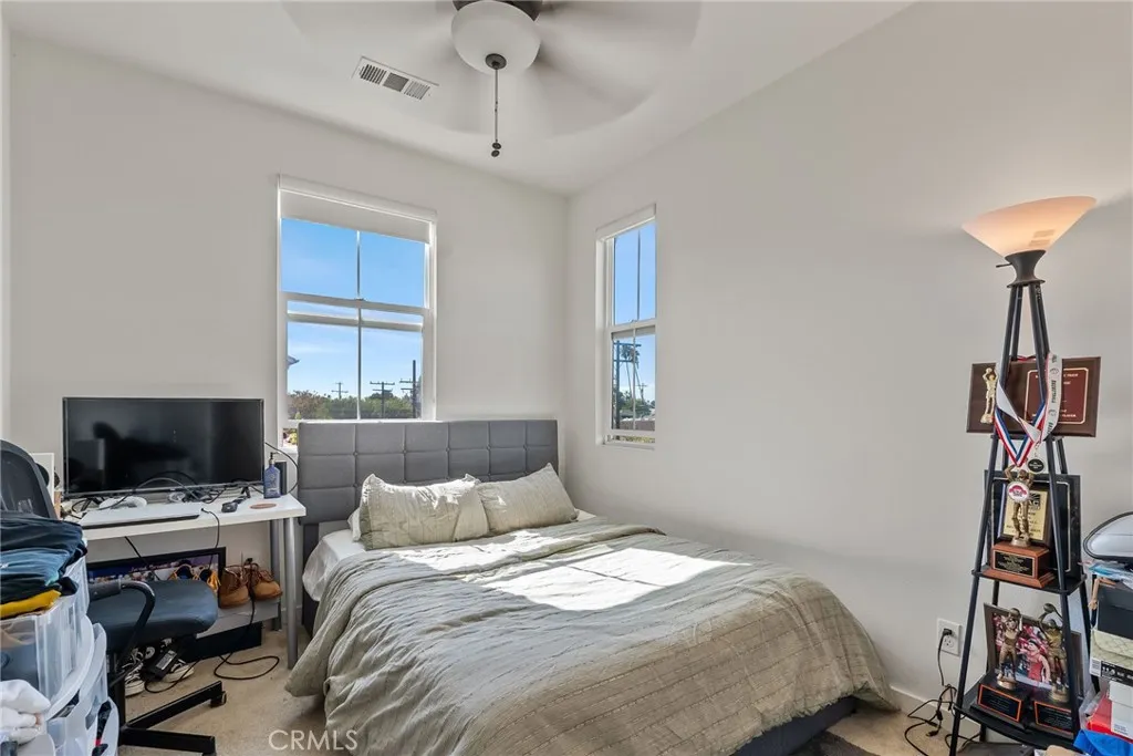Welcome to this stunning, fully detached modern home built in 2016, ideally located in Anaheims sought-after Historic Colony district just steps from the Anaheim Packing House. This 3-bedroom, 2.5-bath residence offers 1,753 sq ft of open and light-filled living space with no common walls. The home features an open-concept layout with a spacious living area, recessed lighting, hypoallergenic laminate flooring, and a chefs kitchen complete with white cabinetry, a large granite island, and ample storage. A versatile downstairs den provides the perfect space for a home office or playroom, while the upstairs primary suite includes dual sinks and a walk-in closet. Additional highlights include a Nest smart home system, built-in water softener, central air, dedicated laundry room, and a two-car attached garage plus driveway parking for two more vehicles. Located within the Avelina Community Association with low HOA dues, this home offers low-maintenance living close to major freeways (5, 57, and 91), making your commute effortless. Enjoy being minutes from Disneyland, Angel Stadium, and the future OC Vibe entertainment district all while living in one of Anaheims most walkable and vibrant neighborhoods that perfectly blends modern comfort with urban convenience.