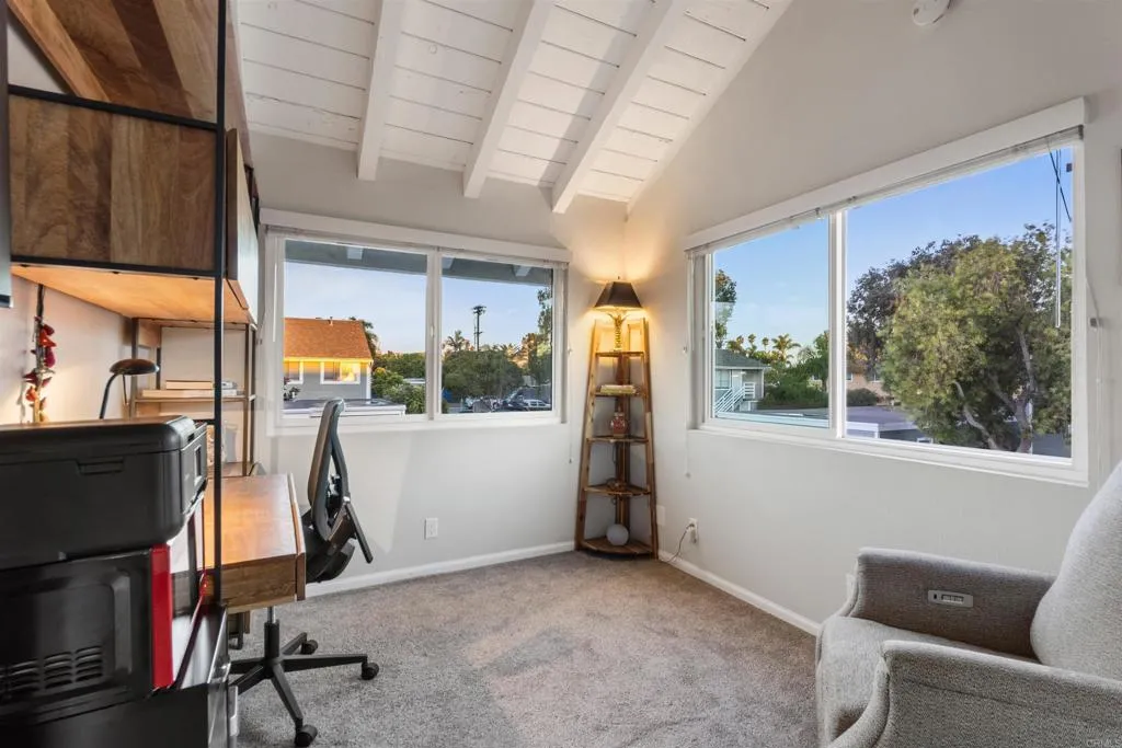 Welcome to your own corner of paradiseWest of the 5 walking distance to the heart of CARLSBAD VILLAGE! Nestled between the Pacific Ocean and Buena Vista Lagoon, this charming corner-unit townhome captures the essence of coastal living, with ocean breezes and peaceful views. The light-filled interior features vaulted ceilings, an inviting living room with fireplace, and an upgraded kitchen with granite countertops, dining area, and plenty of storage. From the living room, enjoy a rare sit-down ocean viewperfect for relaxing and soaking in Carlsbads coastal charm. The kitchen and living spaces flow seamlessly to a private patioperfect for morning coffee or relaxing by the fire pit with a glass of wine. Recent upgrades include double-pane windows for energy efficiency, a newer refrigerator, dishwasher, garbage disposal, microwave, and water heater. The private patio has been thoughtfully improved to create a relaxing outdoor retreat, perfect for morning coffee or evening gatherings. The garage has also been updated with new shelving for additional storage and organization. Upstairs, expansive windows in the primary suite offer peek ocean and lagoon views that make every day feel like a vacation. Two additional spacious bedrooms provide abundant natural light and flexibility for children, guests, or home office. Complete with a finished one-car garage attached to the patio, plus an adjacent, assigned parking space, this home is just a short stroll to Carlsbads beaches, shops, theater, art gallerys, and fine dining. This low-density community is located in the heart of Carlsbad'