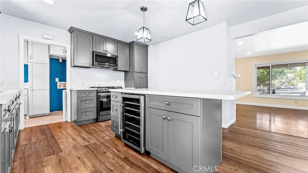 Charming & Updated 3-Bedroom Home with Modern Amenities Welcome to this beautifully remodeled 3-bedroom, 1 and 3/4 bath home, a perfect blend of classic charm and modern convenience. Step inside to discover stunning wooden floors that flow seamlessly throughout the entire living space, creating an inviting and cohesive feel. The kitchen is a chef's delight, boasting sleek, newer cabinets, gorgeous quartz countertops, and a highly functional island. This central feature provides extra prep space and a perfect spot for casual dining. Both bathrooms have been meticulously remodeled with updated fixtures and finishes. Comfort is key with double pane windows throughout the house for energy efficiency and a quieter interior. You'll stay comfortable year-round thanks to the newer AC/heating unit and enjoy endless hot water from the tankless water heater. Additional high-end features include recessed lighting, a dedicated laundry room with a marble floor and a wash basin, and excellent storage solutions. Every bedroom features custom blinds and closets with built-in organizers and stylish mirror closet doors. Outside, you'll find a double detached garage providing ample parking and storage. This move-in-ready home offers a fantastic lifestyle in a convenient package