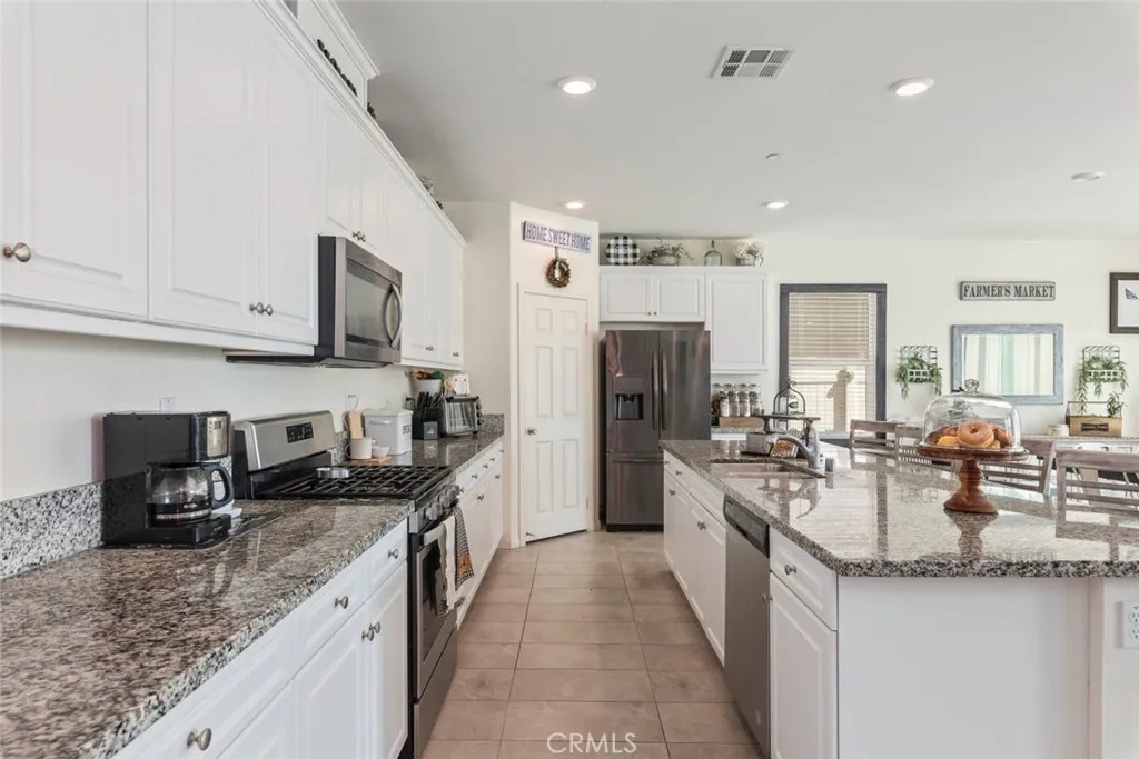 Dont miss this one! This beautifully maintained single-story Hidden Hills home offers four spacious bedrooms, two and a half bathrooms, and is perfectly situated in a desirable cul-de-sac. An original-owner property, its been lovingly cared for and thoughtfully upgraded. With soaring ceilings, a generous layout, and a large lot, this turnkey home is ready for your personal touch. Upon entry, you're welcomed by modern neutral tile flooring and an extra-wide hallway that sets the tone for the homes open and airy design. The kitchen features granite countertops, bar seating, a walk-in pantry, stainless steel appliances, a separate dining area, and abundant cabinet space. It flows seamlessly into the family room, creating a warm and inviting space perfect for everyday living and entertaining. A large formal dining room is located just off the hallway (and or flex room) and a conveniently placed half bath is ideal for guests. The primary suite serves as a peaceful retreat, offering a massive walk-in closet, dual sinks, and a shower/tub combo. The additional bedrooms are generously sized, and the full hallway bathroom also includes dual sinks for added functionality. The dedicated laundry room is equipped with built-in storage and a utility sink, and the spacious two-car garage comes with a tankless water heater for added efficiency. Outside, the backyard features a pool-sized lot with a mix of vinyl, block, and wrought iron fencing, along with both grassy and hardscaped areas. The drought-tolerant front yard is designed for easy, low-maintenance living. Located just a two-minute