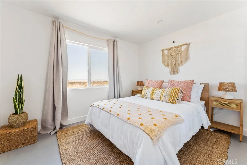 Exquisite remodeled home to the highest standard: Santa Barbara smooth stucco, floor-to-ceiling custom tile in the bathroom and counter-to-ceiling tile in the kitchen. Quartz countertops and solid oak cabinets throughout. FULLY FURNISHED/TURNKEY furnishings, art and design setup is complete and ready to move-in or rent. No stone left unturned, inside or out, including recently upgraded 200-amp electrical panel, septic tank, AC/Heating, roof, EV charger, fenced, tiled carport that doubles as a custom porch the works! Hot tub. Great getaway vacation home, Airbnb or even a primary residence in perfect condition! Sublime, rural location on the border of Joshua Tree and Landers, with easy access to both, but at a location like this, you can hike right out the front door into surrounding wilderness or relax and stargaze surrounded by peaceful desert in all directions. Seller will provide Buyer with detailed instructions on running the Airbnb which has all been automated; Seller also has reliable vendors in place for cleaning, pool, etc., and will provide those contacts. These established automated systems and contacts help make monitoring and maintaining the home from a distance a breeze for any vacation home buyer/manager.
