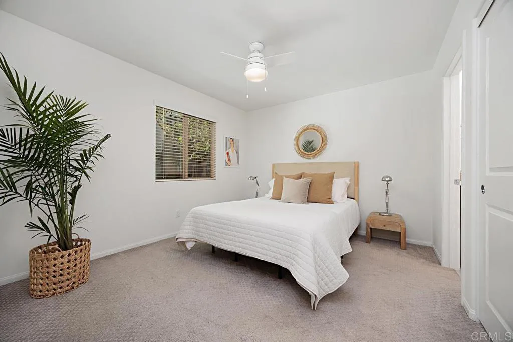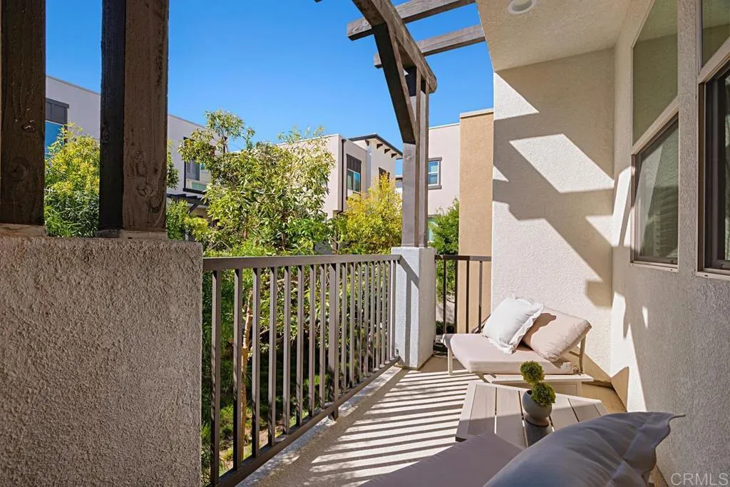 Beautiful end-unit townhome in gated Skyline community. Located near the Carlsbad border and minutes from Bressi Ranch, this 4-bedroom, 3.5-bath end-unit townhome offers modern living in a peaceful, gated setting away from road noise. The flexible floor plan includes a full bedroom and bath on the entry level - ideal for guests or a home office. The bright, open second level features luxury vinyl plank flooring, a spacious kitchen with a large island, stainless steel appliances, abundant storage, a private balcony off the living area and half bath. Upstairs, the primary suite includes a walk-in closet, dual sinks, and glass-enclosed shower, plus two additional bedrooms, a full bath, and in-unit laundry. Additional features include a two-car garage with storage racks, central A/C, and energy-efficient construction. Skyline offers resort-style amenities - pool, spa, BBQ areas, playground, and greenbelts - all within the top-rated San Marcos School District. Move-in ready and perfectly located for North County living. Buyer and buyer's agent to verify all in MLS prior to COE.