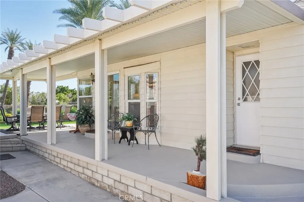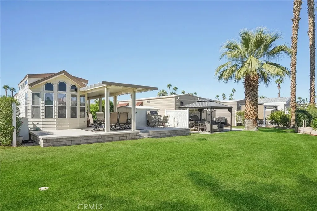 Welcome to this wonderfully appointed and perfectly situation vacation "Tiny House." This unit is in an active adult community that thrives for part-time residents and 'snow-birds'. Situated on the boulevard with no neighbors behind allows for fabulous views and tons of personal space. The deck is enormous with multiple seating areas and BBQ area. There's also a wonderful grassy area behind. Inside you'll find vaulted ceilings, well-appointed kitchen, including dishwasher and garbage disposal, as well as tons of storage. The full size queen bed is walk around with ample closet space and even underbed storage. This place has been lovingly care for by it's owners for nearly two decades. There's a shed for additional storage. The community has three pools in all, pickleball courts, shuffleboard, a huge putting green as well as golf driving practice area and pitch and putt field to play. The available activities are expansive both in and out of the community including concerts, dinners, games, golf and other sports competitions as well as field trips to sporting events and museums. You own the land here, no land lease. So, come take a look at this lovely little place and see that you also get a whole new lifestyle with it. This community does not allow pets and is for adults who are at least 55. Come see all that the desert has to offer in this "tiny" but lovely package.