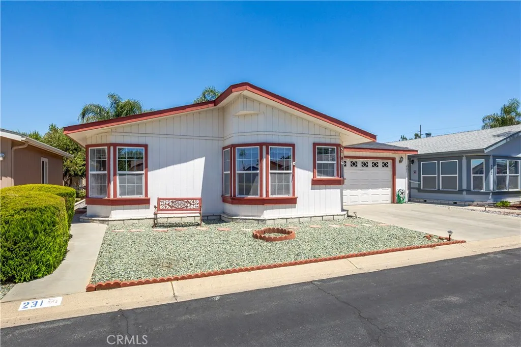 1250 N Kirby St #231, Hemet, CA Spacious & Upgraded Home with Rare 2-Car Garage in the Foothills of Hemet 55+ Community. Welcome to this beautifully maintained 2-bedroom, 2-bathroom home located in the highly desirable Foothills of Hemet, a gated 55+ community known for its peaceful setting and resort-style amenities. This spacious home stands out with tall ceilings, an open floorplan, and upgrades throughout. The large kitchen is a standout feature, offering a center island, abundant cabinetry, and a seamless flow into the formal dining roomperfect for entertaining. The oversized living area provides ample room to relax and enjoy the natural light that fills the space. The primary bedroom suite includes a bonus area ideal for a home office, craft space, or reading nook, along with a private bath and generous closet. The secondary bedroom and full guest bath are equally well-sized, and there's a convenient indoor laundry room for added functionality. A rare find in this community: this home boasts a full 2-car garage, available only in select homes in the back section of the park. This is an incredible bonus, especially on a land-leased lot, where garages of this size are uncommon. Enjoy the outdoors from the covered front porch or unwind in the low-maintenance yard. A private storage shed is also included. All this with a low monthly space rent of just $875! Residents of the Foothills of Hemet enjoy access to a pool, spa, clubhouse, fitness center, billiards, and a vibrant calendar of social activities. Conveniently located near shopping, restaurants, medical centers, and