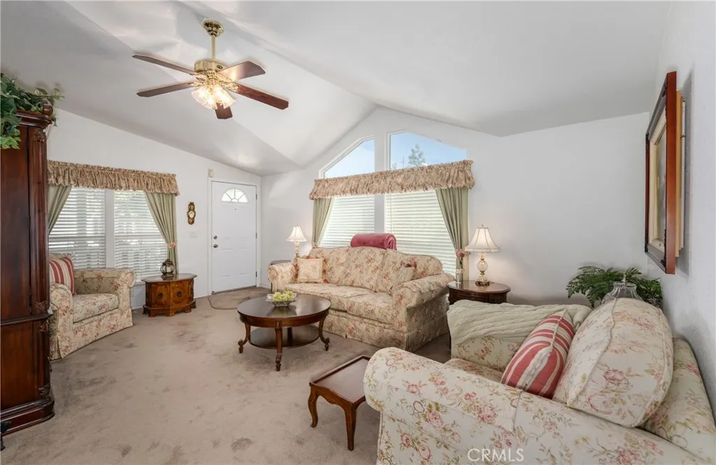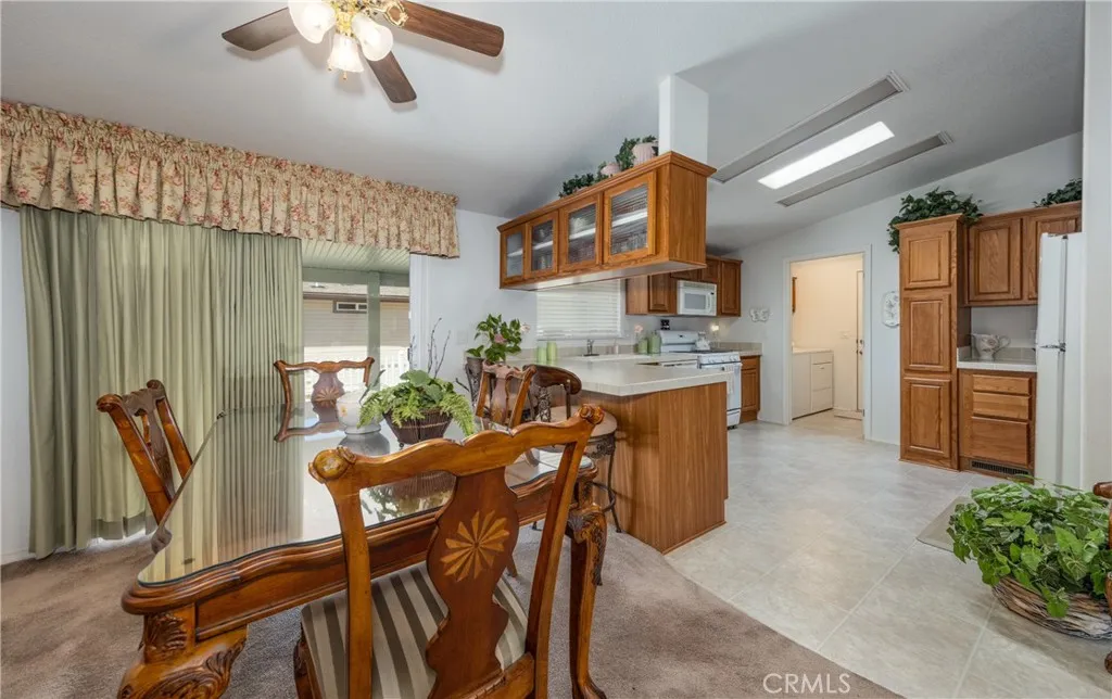 MOTIVATED SELLER! Lovely manufactured home located in the desired senior 55+ gated community of Foothills of Hemet, and as a bonus has an attached 2-car garage. Enjoy your mornings or evening on your porch overlooking your lush green yard & shade tree. Home has very spacious primary bedroom & bathroom w/step-in shower. Guest bedroom at the end of the hallway w/guest bathroom right next door to it. The third bedroom which has double door entry is being used as an office since it doesn't have a closet. Kitchen with new microwave & disposal is light & bright with lots of cabinetry that opens up to the dining and living room areas. Inside laundry room also has a pantry closet in it. Central air, evaporative cooler, and ceiling fans keep this home cool & comfortable. Energy efficient tankless water heater. Covered back patio for entertaining. The park is clean, quiet, gated and just plain awesome with amenities including 2 swimming pools, spa, pickleball courts, air-conditioned shuffle board court, exercise room, recreation hall w/kitchen, and rooms to enjoy billiards, cards, bingo, crafts & fun planned dinners or activities. Ask about the park's RV parking area. Commuter friendly, and close to shopping & restaurants.