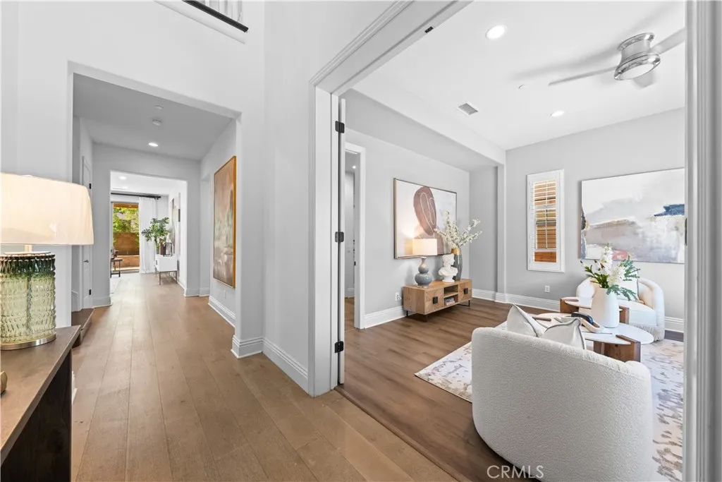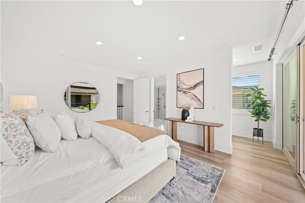 Located within the highly sought-after Greenwood at Tustin Legacy community, this stunning 6-bedroom, 5.5-bathroom home offers expansive living space in a lively, family-friendly neighborhood. 3 mins driving to Costco, 99 Ranch Market, and The District shopping center. 10 mins to UCI, and 20 mins to the beach. The flexible floorplan boasts two primary bedrooms, one of them is on the 1st floor, designed as an ideal 'In-Law' suite featuring its own dedicated living room. The downstairs primary bathroom provides a luxurious retreat with his-and-her vanities, a separate soaking tub, and a large steam glass shower. The second master bedroom is upstairs with an oversize balcony that brings you the perfect summer breeze. It has a fully remodeled bathroom, with a modern color scheme, dual sinks, a standalone soaking tub, and a glass shower. The interior is designed with warm, inviting tones, complemented by modern features and hard flooring throughout. Excellent recessed and natural lighting shines throughout the home, highlighting both its functionality and appearance. The windows are further enhanced with elegant custom shutters, providing excellent light control and privacy. The gourmet chef's kitchen is equipped with stainless steel appliances and features an expansive layout, perfect for preparing meals for a large family. From the main living area, panoramic sliding glass doors seamlessly connect to the spacious backyard, inviting effortless enjoyment of the coveted California indoor-outdoor lifestyle. Broker and broker's agents do not represent or guarantee accuracy of the s