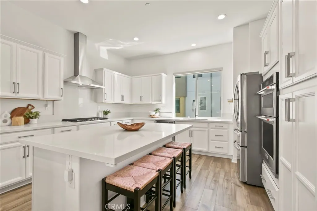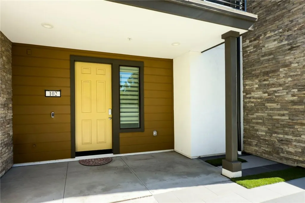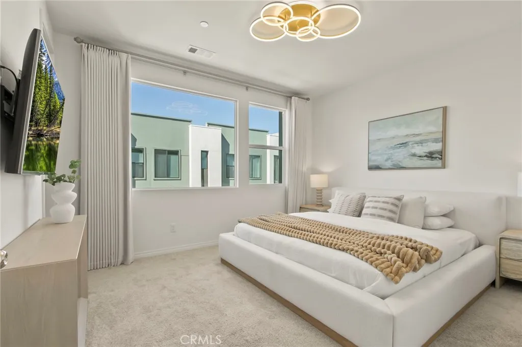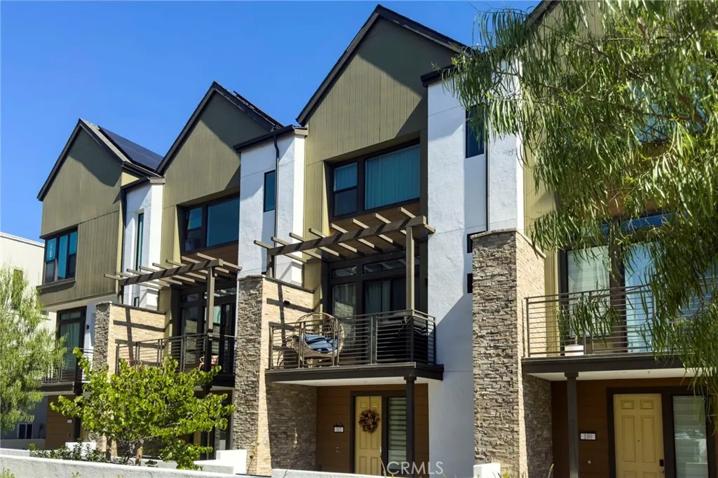 Discover modern living in the highly coveted Irvine Great Park Neighborhood with this bright and spacious 2-bedroom, 2.5-bath home built in 2022. With 1,576 sq ft of open-concept space across three thoughtful levels, this residence offers both style and practicality. Step inside to gleaming luxury vinyl flooring in all communal areas, carpeting in the bedrooms, high ceilings and recessed lighting that frame a clean, luminous environment. The main living level flows seamlessly into the upgraded kitchen featuring premium KitchenAid wall-mount ovens and smart-appliance convenience. Both bedrooms feature their own ensuite baths and walk-in closets, an ideal setup for comfort and privacy. Smart-home lovers will appreciate the fully integrated system: smart dimmer switches throughout, a premium Eufy fingerprint door lock, and a MyQ smart garage opener, all designed for easy, modern living. Outside, the home is equally impressive. A paid-off solar panel system keeps utility costs low. The two-car direct-access garage includes epoxy flooring, LED accent lighting, overhead SafeRacks storage, and a dedicated Emporia car-charging system. Inside, amenities extend, the tankless water heater with hot-water circulation pump and sensor valve ensures instant comfort without waste. The front yard is professionally landscaped creating a beautiful courtyard that invites quiet conversation or outdoor gatherings. A balcony off the upper level is perfect for relaxing at sunset or hosting a casual barbecue. Located just steps from the popular Wild?Rivers?Water?Park and within the top-rated Irvine