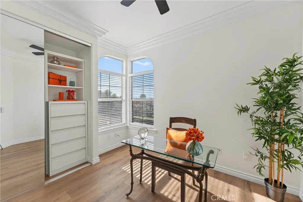 Located in the exclusive gated community of Summit Renaissance, this beautifully remodeled home offers an exceptional blend of comfort, style and modern convenience. Featuring brand new luxury plank flooring, fresh interior paint with designer colors, custom blinds, new electrical work, mostly new plumbing. All mechanical systems have been serviced and up to date. A spacious living area boasts soaring ceilings, a cozy fireplace, walk out balcony and plenty of natural light. The kitchen features granite countertops that include a breakfast bar, stainless steel appliances and beautifully finished cabinetry with plenty of storage. The spacious primary suite includes city lights views, an ensuite bathroom, double vanity sinks with granite countertops, and a generous walk in closet. Large plank flooring extends to all living areas and bedrooms which each feature custom built in closet organizers for convenient storage. Additional highlights include over-sized crown molding, new baseboards, interior full size laundry area, and a private two car garage with wall to wall custom cabinetry. Located within a desirable gated community with additional luxuries that include a beautiful pool and spa for relaxing or entertaining guests. Close to freeways, shopping, restaurants, parks, schools, hiking and biking trails and in one of Orange County's premiere communities!