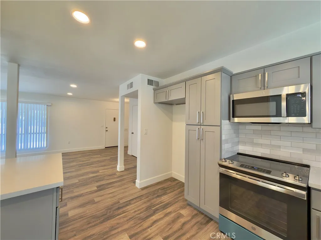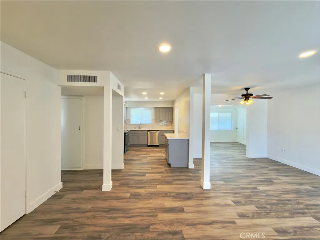 Fully renovated turnkey home in one of southern California's largest active adult communities. This open floor plan home has been upgraded from top to bottom: freshly painted interior and exterior, luxury vinyl plank flooring throughout the entire home, new kitchen and vanity cabinets with quartz countertops and designer tile backsplashes, all new stainless steel appliances, designer tile shower, recessed lighting in the living areas and bathroom, window coverings, as well as brand new washer and dryer included.
