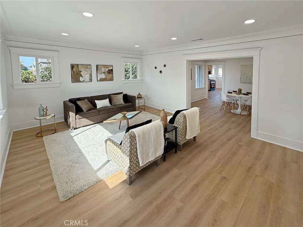 Tucked behind charming, low-maintenance front and back yards in the heart of Long Beach, this beautifully updated 3-bedroom, 2.5-bathroom home seamlessly combines coastal charm with modern living. Just minutes from the beach, Belmont Shore, and Downtown Long Beach, youll be surrounded by some of the citys best restaurants, cafs, boutiques, and nightlifewhile still enjoying a peaceful neighborhood atmosphere that offers both privacy and convenience. Step inside to find a bright and inviting interior where the living and dining areas are filled with natural light, featuring large windows, recessed lighting, and gorgeous wood-style floors that flow throughout. The galley-style kitchen impresses with crisp white cabinetry, sleek black hardware, modern countertops, and brand-new appliances, blending style and functionality for everyday living. Each bedroom is generously sized and filled with natural light, while the primary suite features its own ensuite bathroom with a mid-century inspired vanity and fixtures, preserving the homes timeless character. The spacious backyard is perfect for entertaining, gardening, or relaxing outdoors. A large detached garage provides abundant space for vehicles, storage, or even a potential workshop, and the extended driveway easily fits an additional 34 cars, ideal for guests or multiple vehicles. Whether youre searching for your first home or a turnkey investment property, this Long Beach coastal gem offers comfort, character, and a prime locationall in one move-in-ready package.