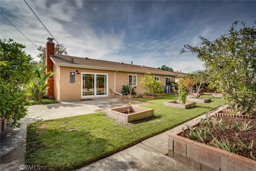 Welcome to this beautifully maintained single-level home in Anaheim featuring 4 spacious bedrooms, 2 updated bathrooms, and approximately 1,950 sq ft of living space on a generous 8,470 sq ft lot. This inviting property combines comfort, charm, and outdoor serenity. Inside, the layout easily connects the dining and kitchen area with both a living room and an additional family room, creating a perfect space for gatherings. The kitchen features plenty of countertop space and deep cabinetry as well as upgraded appliances. The bedrooms are roomy with large closets and the primary bedroom features an en-suite bath. Step outside to your own backyard oasis where you will find a lush garden surrounded by mature fruit trees including an anise, gala, green and pink lady apple trees, an apricot, an avocado, a white, yellow and pink grapefruit trees, a lemon tree, a white and a yellow peach tree, a blood orange tree, a mandarin orange, 2 navel orange trees, 2 Valencia orange trees, a tangerine tree and two pomegranate trees, offering both beauty and homegrown bounty. The expansive patio and lawn area are ideal for relaxing, entertaining, or enjoying California sunsets. Located near shopping, dining, schools, and parks, this single-story gem offers both convenience and tranquility. With a wide driveway, two-car garage, and exceptional curb appeal near the end of a quiet cul de sac, 3115 W Teranimar Dr is ready to welcome you home.
