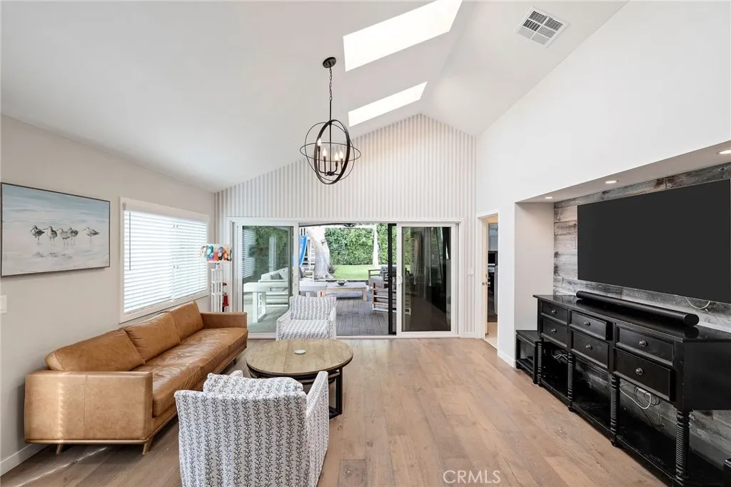 Don't sleep on this Coastal Modern remodeled home in the desirable Kentwood neighborhood, positioned on an oversized South Facing Corner Lot. Upon first glance, youll be greeted by California native drought-tolerant landscaping and winding pathway framed by mature shade trees leading to your elevated front porch, complete with a Dutch Door. Inside, wide plank wire-brushed wood flooring flows throughout, a reclaimed wood accent wall, vaulted ceilings, fun wallpaper, and three skylights are just a few of this stunning homes details. The classy nautical themed kitchen features custom finish soft close cabinetry, Quartz countertops with a subway tile backsplash, a wide farmhouse-style sink, floating shelves, designer light fixtures, all stainless appliances, including a professional grade 36 gas range, and there's a large center island, anchoring the space. There are multiple dining options, from casual at the bar/island to just off the kitchen a bit more formal or my favorite, dining al fresco under the covered lanai-style pergola, equipped with heater, ceiling fans, and lighting. The primary suite is private, tucked away and features a cozy fireplace, reclaimed wood accent wall, a custom-built-in Wardrobe Wall, and primary bath with marble and glass tile flooring and a floating vanity. The fourth bedroom, just outside the primary, has been converted into an amazing designer closet. The other two guest bedrooms are just down the hall along with a generously sized full bathroom. Theres also a half bath conveniently off the living room that transitions into the garage. The finis