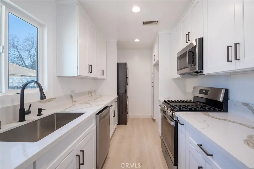 Come experience the beauty of Sunland! Two homes for price of one! this charming and completely remodeled 2-bedroom, 2-bathroom home and brand new 2 br 2 ba ADU! Nestled on a peaceful street, this bright and spacious home offers 1,021 square feet of living space and 780 SQFT of brand new ADU. The interior features NEW laminate flooring, NEW recessed lighting, central AC and heating, as well as ample storage space and dual pane windows for added comfort. The home boasts a large living room, a dining area perfect for gatherings, and a well-equipped, BRAND NEW kitchen with sleek countertops, NEW stainless steel appliances, and fresh white cabinets. Updated bathroom with plenty of storage space. Both bedrooms feature mirrored closets, providing convenience and functionality. Home has a laundry area with a new washer and dryer. Situated on a corner lot. The property has a huge front and back yard. The backyard offers a lawn area and a spacious patio that can be customized with seating for outdoor entertainment. Each home has been separated with the fence and has its own yard!