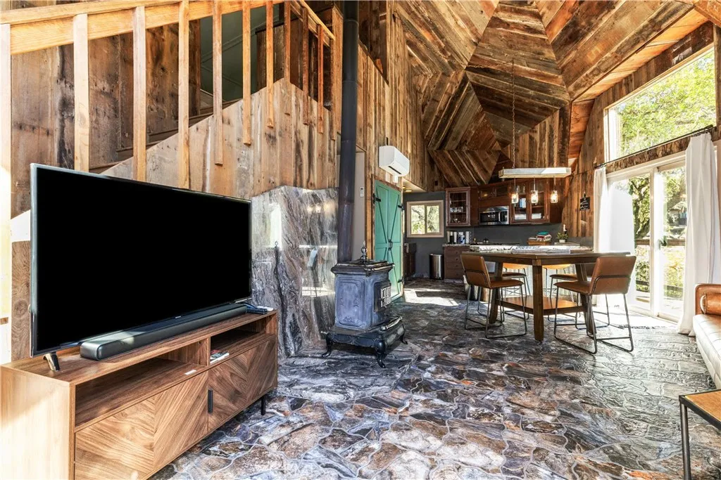 Nestled in the serene hills of the Oak Shores community at Lake Nacimiento, this one-of-a-kind updated dome house offers a perfect blend of architectural uniqueness, modern comfort, and breathtaking natural beauty. The fully furnished iconic geodesic dome design not only turns heads but also provides exceptional energy efficiency and panoramic views from every angle. Step inside to an open-concept layout perfect for seamless entertaining, with fresh finishes, ample natural light, and a layout that feels both expansive and intimate. From sleek kitchen countertops and updated appliances to refreshed bathrooms and flooring, every detail has been curated for contemporary style without sacrificing the home's charm. The main living area features walls and ceilings finished in reclaimed redwood with a cast-iron wood-burning stove. Multiple newly installed mini-split units deliver efficient heating and cooling. The kitchen offers marble countertops, a hammered copper sink, stainless steel appliances, breakfast bar seating, a large pantry behind barn-door detailing, and high-end finishes throughout. On the upper level (loft) youll find an additional bedroom/entertainment area plus a fully-remodeled large bathroom. On the main living level are two spacious bedrooms, updated adjacent bath with walk-in shower, and mirrored closets with ceiling fans for comfort. Perched up the hill on a generous lot, enjoy unobstructed vistas of the surrounding oak-dotted landscapes. The home boasts an oak-shaded back deck with views of the surrounding woodlands perfect for lounging, entertaining or so