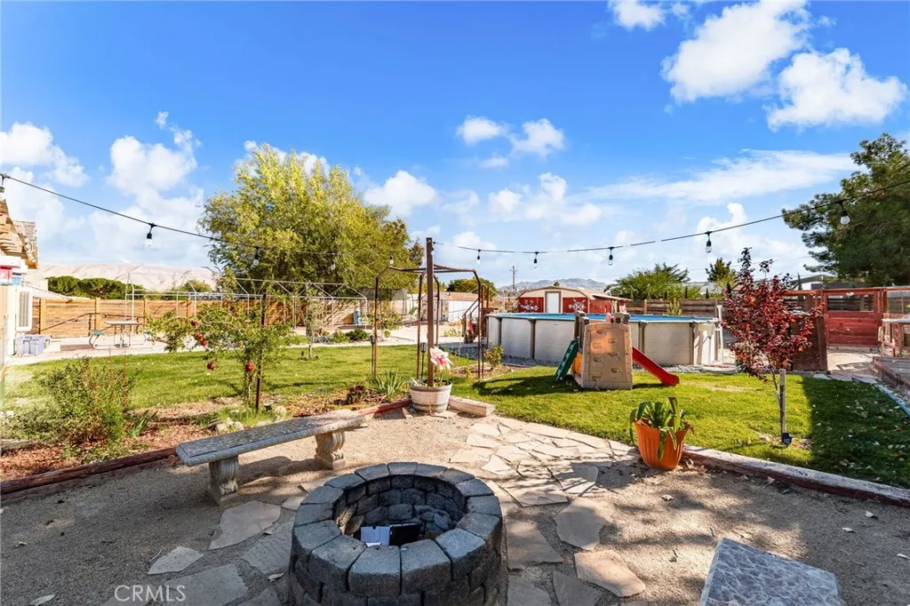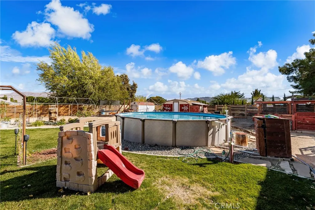 Nestled on the Mesa in Hesperia, this charming ranch-style home offers a perfect blend of privacy and convenience. Boasting four bedrooms and two bathrooms, it's ideal for family living or entertaining guests. The fully fenced yard provides a safe haven for children and pets, while the nearby town amenities keep everything in reach. This beautiful home features a cozy fireplace, perfect for relaxing evenings. The finished garage includes attic-style storage, offering plenty of space to keep your belongings organized. Indoor laundry for added convenience, making chores easier. Additionally, a slider off of the primary bedroom provides easy access to outdoor living spaces or a private patio. Enjoy sunny days by the above-ground pool or unwind on the spacious patio- perfect spots for gatherings or relaxation. There's a dedicated shed for storage or hobbies, plus a garden area to cultivate your green thumb. With ample room for animals, this property is a dream for those seeking a rural feel with modern comforts. Solar panels help keep utility costs low, making this home both eco-friendly and economical.