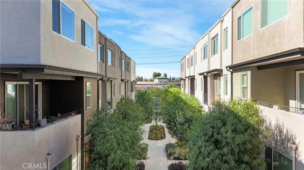 Modern Northridge Single Family Residence in Planned Community Built in 2020, this stylish 3-bedroom, 3.5-bath tri-level home offers 1,657 sq.ft. of beautifully designed living space in a desirable planned unit development in Northridge. The lower level features a private bedroom and full bath perfect for guests, a home office, or multi-generational living. On the main level, enjoy an open-concept layout with a stunning granite kitchen, rich mocha cabinets, and stainless steel appliances including a refrigerator, dishwasher, microwave, and freestanding oven. The oversized granite island with USB ports provides additional seating and prep space, while recessed lighting and high ceilings create a bright, modern feel. A convenient half bath for guests and a private balcony complete this level ideal for entertaining or relaxing. The third level offers two ensuite bedrooms. The primary suite includes a luxurious bath with dual sinks, while the secondary bedroom features its own private full bath. Energy-efficient features include seller owned solar panels, dual-pane windows, a smart 2-zone AC controller, and a tankless water heater keeping comfort high and utility costs low. Additional highlights include laminate flooring throughout, keyless front entry, a Bluetooth-enabled garage door opener, and an attached two-car garage with direct access. Located in the heart of Northridge, this home sits in the middle of the community with a peaceful greenbelt view, just steps from public transportation and close to Cal State Northridge, Northridge Mall, restaurants, and shopping. Exper