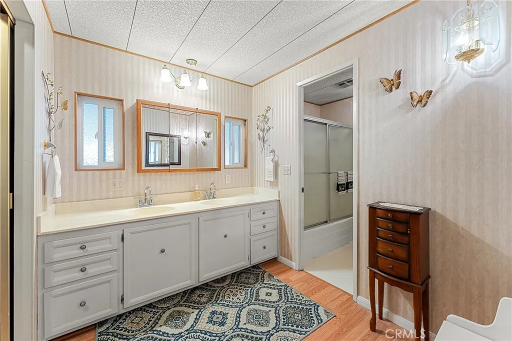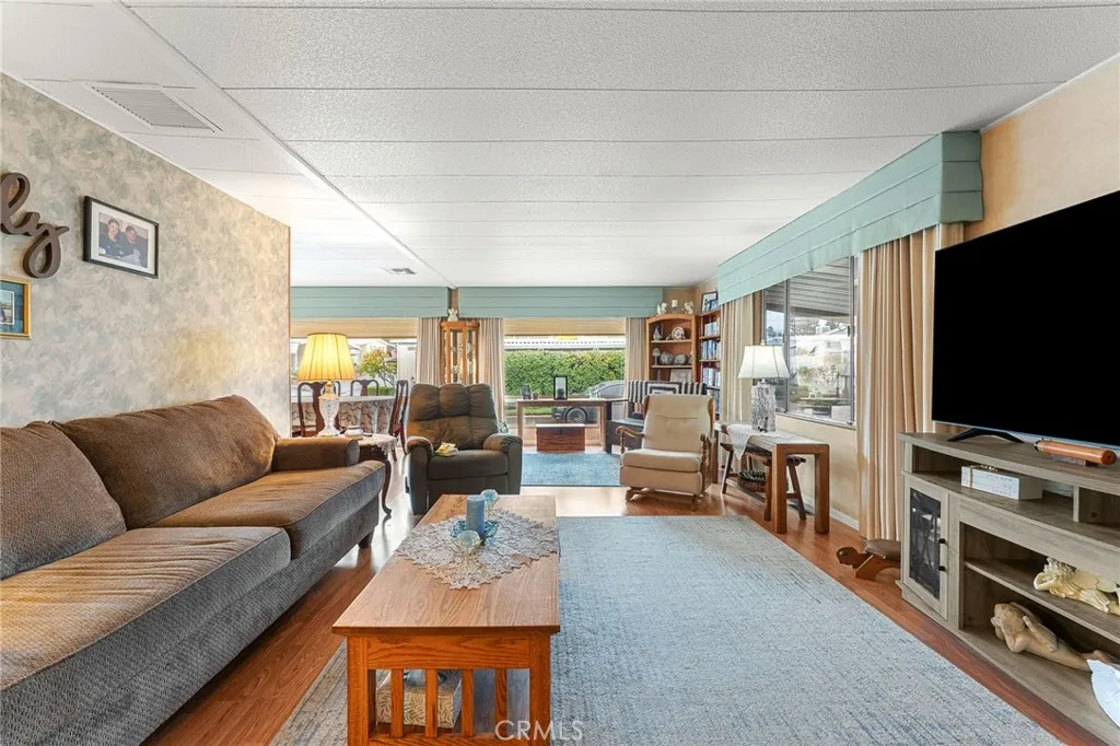 Fantastic Location in Upper Yucaipa. Hidden Village Mobile Home Estates, 55+ Senior Community. Super clean! Beautiful & Spacious 2 bedroom, with expando giving added space for office, gym, craft room or whatever your heart desires. Almost all newer dual pane windows throughout. Tons of natural light with views of the San Bernardino mountains. Impeccably maintained inside and out, with earthquake stabilizers installed and recently inspected approx July 2025. Updated Kitchen granite countertops, Newer slider, updated flooring in kitchen and living area all on a large corner lot.