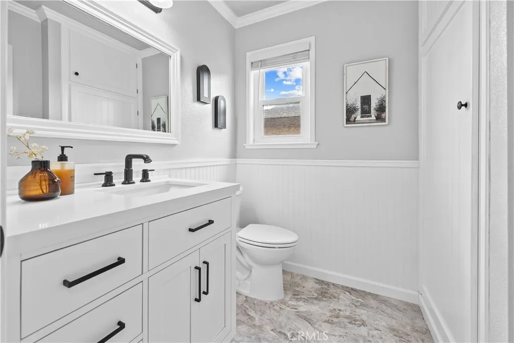 Beautifully updated 3 bedroom, 3 bathroom home in peaceful Lake Hughes! This clean, move-in ready property features bright living spaces, plantation shutters, and modern finishes throughout. Enjoy low-maintenance, drought-tolerant landscaping surrounded by block walls for privacy. The backyard offers a covered pergola perfect for relaxing or entertaining, plus a massive 53' x 44' gravel pad ideal for RV, boat, or toy storage. Ready to enjoy inside and out! Note: "The previous owner built a closet inside the fiberglass shower that is still in place. It could easily be made back into a 3/4 bath with removal of the closet- per owner"