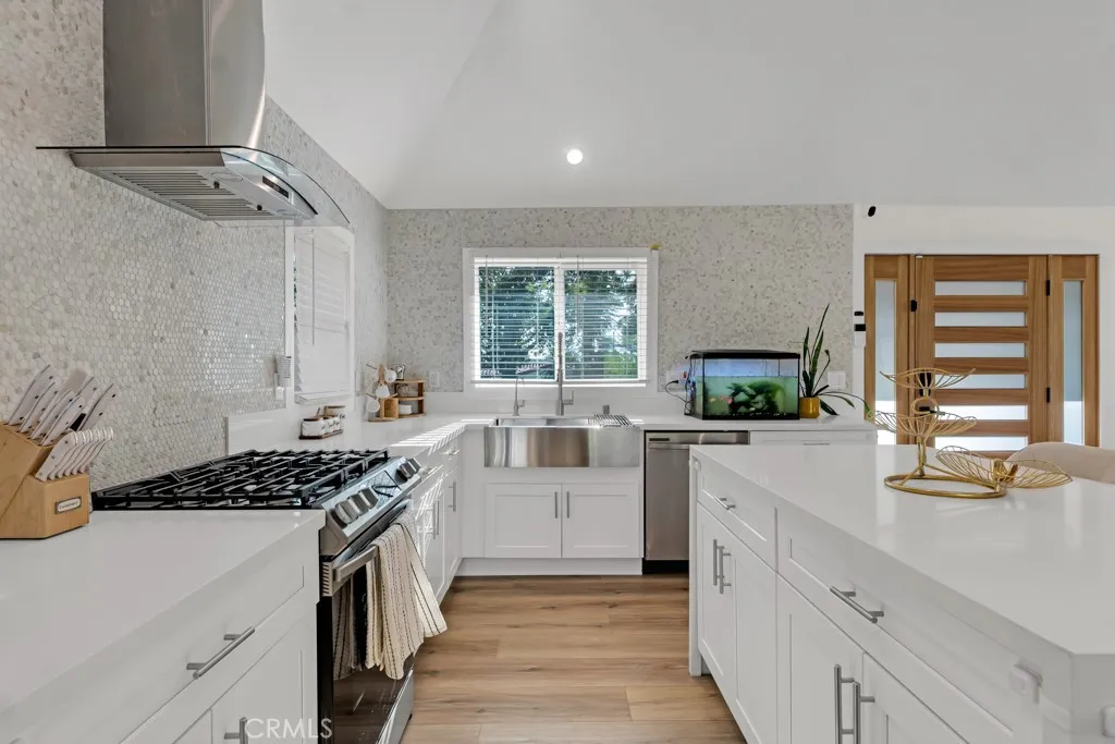Welcome to 1911 W. Kenneth Road, a beautifully renovated modern home in the highly sought-after 91201 zip code, just steps from charming Kenneth Village. This stylish 3-bedroom, 2-bath residence offers 1,638 sq. ft. of living space on a generous 7,028 sq. ft. flat lot with exceptional curb appeal and a finished detached garage with french doors that can be used as an office, studio, or future ADU. ADU! Vehicle charging station included. A plus is the Seller also has an RTI permit to build a 2 bedroom, 800 sq. ft. Step inside to discover a bright, open floor plan with high ceilings, newer flooring, and a seamless flow between the kitchen, dining, and the living area. The huge designer kitchen features stainless steel appliances, a beautiful backsplash and modern finishes. The spacious living room area has plenty of outdoor light coming in from the huge glass doors and a view of the gorgeous deck. The master bedroom has custom sliding doors that step to the private, luscious green backyard. The custom deck is perfect for indoor-outdoor entertaining. The property has copper plumbing, a tankless water heater, recessed lighting, Nest thermostat, and fresh interior and exterior paint. Located in one of Glendales most desirable neighborhoods, this move-in-ready gem combines luxury, comfort, and location. A must see!