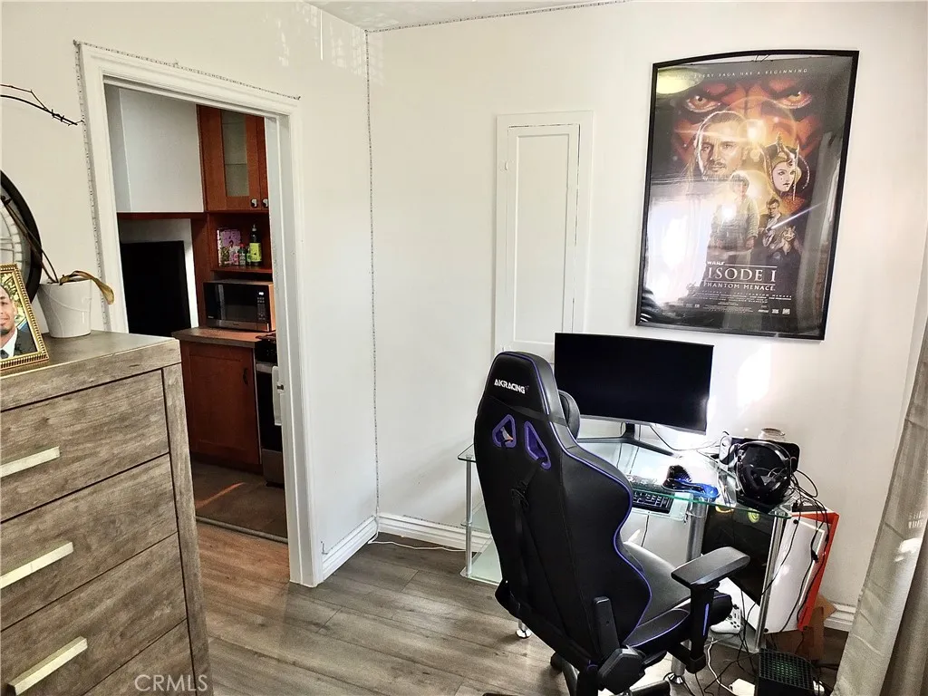 Discover this chic end-unit condo, located on the upper level at the front of the building. This inviting 1 bedroom, 1 bath residence boasts a spacious living room plus a bonus room, ideal for a home office. The home features fresh paint and stylish wood-like flooring throughout, along with ample closet space. The secure complex offers a community laundry room, storage facilities and a large shared backyard. HOA covers most utilities, including water, gas, and trash, leaving you responsible for only internet and electric.