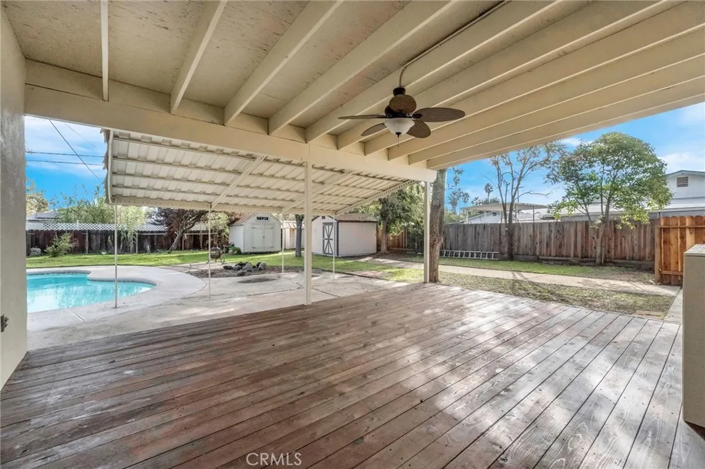 Welcome to 6048 N Del Mar Avenue in Fresno a beautifully updated home with a pool and spacious backyard, perfect for entertaining! Enter inside to an inviting living room with new flooring and modern lighting, creating a warm and open atmosphere. The updated kitchen features new cabinets, a pantry for extra storage, and newer appliances, flowing into a cozy dining area ideal for everyday meals or gatherings. The home offers comfortable bedrooms with large closets and new flooring, along with updated bathrooms featuring new showers and tubs. The indoor laundry area provides easy access to the backyard for added convenience. Enjoy outdoor living on the large covered patio with new decking and a convenient half bath, perfect for entertaining by the sparkling pool during Fresno's warm summer months. The spacious yard also includes three storage sheds and side carport access for added functionality. Located near schools, shopping, and dining, this move-in-ready Fresno home combines comfort, convenience, and value. Schedule your private showing today!