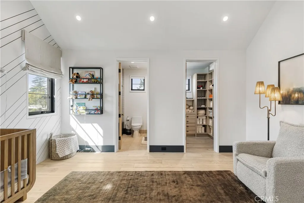 Welcome to this exquisite 5 bedroom, 7 bathroom estate, where modern luxury meets effortless sophistication. Nestled in prime Encino Hills on a tranquil cul-de-sac, this home is zoned for the highly sought after Lanai Elementary School. Thoughtfully designed with a timeless aesthetic, it features Venetian plaster, warm wood floors, custom finishes, and an open layout with soaring ceilings that enhance the sense of space and grandeur. The seamless indoor-outdoor flow leads to beautifully landscaped grounds, complete with a fire pit, BBQ island, and a sparkling saltwater pool and spa with a waterfallan entertainers dream. The primary suite is a true sanctuary, offering a private fireplace, an oversized balcony, and a custom walk-in closet with an island. The spa like bathroom is designed for relaxation, featuring a soaking tub, dual sinks, and an enclosed glass steam shower. Each secondary bedroom is ensuite, boasting soaring pitched ceilings and elegant finishes. Designed for both luxury and convenience, this home includes a state-of-the-art movie theater, a stylish bar and game room overlooking the pool, and two laundry rooms. The chefs kitchen is fully equipped with top-tier stainless steel appliances, a Wolf gas range, Sub-Zero refrigerator and freezer, double ovens, double islands, a walk-in pantry with an extra refrigerator, and a butlers pantry. The formal dining room is a showstopper, adorned with designer wallpaper ceilings and complemented by a temperature-controlled wine cellar. Additional features include a Control4 Smart System, designer light fixtures, custom ca