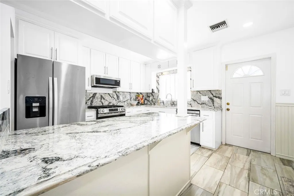 Welcome to the Perfect Family Home with ADU potential! This upgraded 5 Bedroom 2 Bath home located in the highly desirable South of Conant neighborhood was upgraded within the last 4 years. This spacious home features Quartz Counters, Newer A/C, Newer Roof, Paid Off Solar, beautifully Upgraded Main Floor Full Bath with Marble topped vanity, Newer Carpeting, just refinished Natural Hard Wood Floors, 3 Enormous Bedrooms Upstairs with 2 Bedrooms Down, New Stainless Steel Gas Range and Microwave. This is the perfect floor plan for multi-generation family living or live-in help with ample space for everyone. Beautiful Custom Wood Mantle surrounds the Natural Wood Burning/Gas Fireplace in the generously sized living room which you could also use as a formal dining room. Recently installed large format Porcelain Tile throughout Kitchen which also features a full size dining area and island. The Full Size Laundry Room downstairs has ample area for ironing and storage. The additional enormous storage space under stairs to 2nd floor could easily be a walk-in pantry. The private gated back yard with fountain has been professionally landscaped and is secured with large wrought iron gates. Newer concrete driveway with RV Parking and Hook Ups lead to the 2-car detached garage. This beautiful home is Centrally located near top schools, great shopping and easy 405 and 605 freeway access.