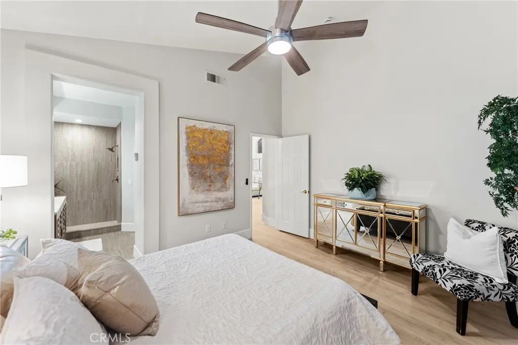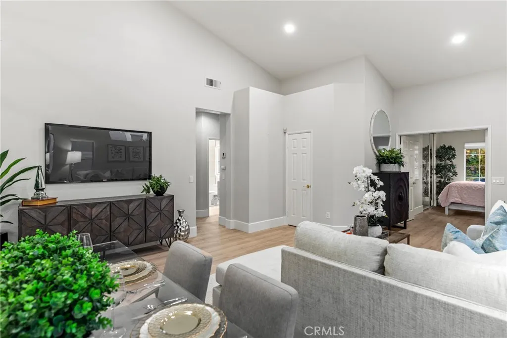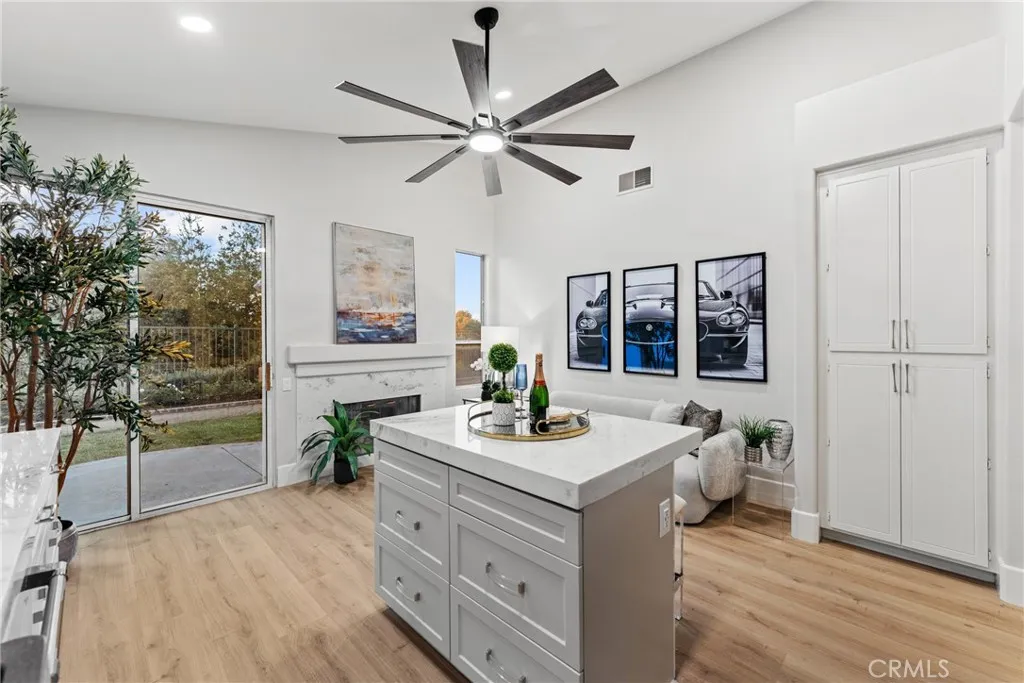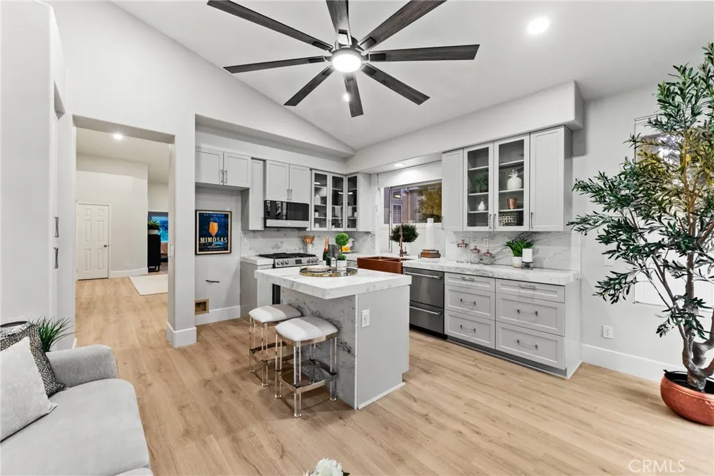 Discover rare single-level living in this beautifully upgraded Anaheim Hills home, set on a premium view lot in the highly desired Canyon Ridge community. One of only 18 single-story floorplans in the neighborhood, this residence offers effortless living with no interior steps, soaring vaulted ceilings, and abundant natural light throughout. The modern renovation features wide-plank luxury flooring,, fresh interior paint, and recessed LED lighting that enhances the homes bright, open feel. The impressive DREAM kitchen is all new - includes white quartz countertops and backsplash to the ceiling, shaker cabinetry, a new island, and Caf stainless steel appliances. Both bathrooms have been tastefully updated with contemporary tilework, new vanities, white quartz counters, lit mirrors, and gorgeous, modern, designer finishes. The spacious primary suite offers city light views and a spa-like bath with a walk-in shower. The formal rooms are adjoining with 16' ceilings - a very elegant yet comfortable place to unwind! Enjoy seamless indoor-outdoor living with sliding doors that open to a low-maintenance yard, perfect for relaxing or entertaining. With an attached 2-car garage, inside laundry, and close proximity to top-rated schools, shopping, and hiking trails, this modern single-level home delivers luxury, convenience, and an unbeatable Anaheim Hills location. Located just 1 off ramp from 241 toll road for a quick 20 minutes to South County!