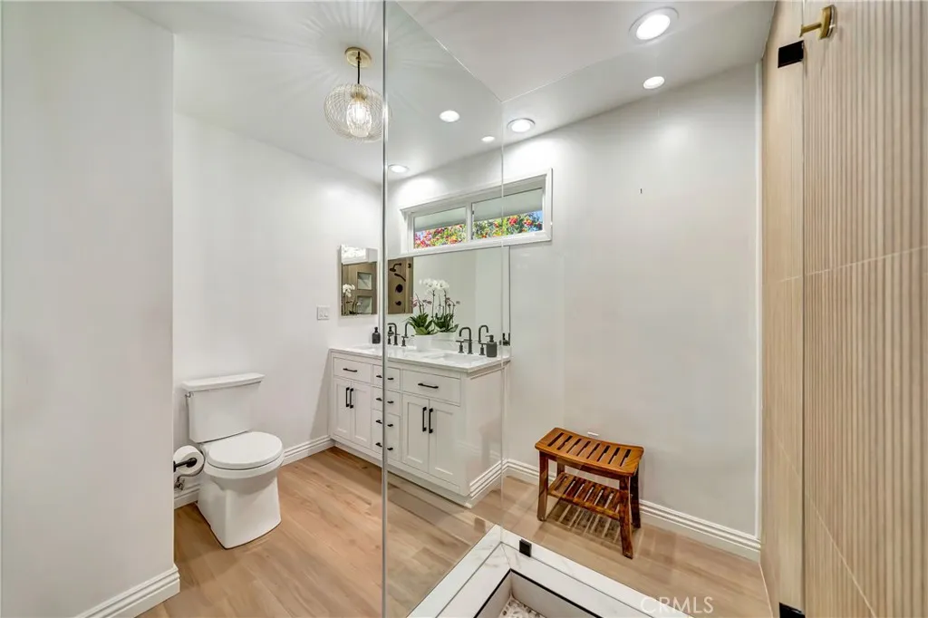 IMPECCABLE ONE STORY, WOODLAND HILLS POOL HOME!!! This gorgeous oasis is turn-key and stunning. Featuring fresh paint both inside and out, wood floors, newer windows and sliding glass doors, remodeled bathrooms, a renovated chef's kitchen boasting quartz counter tops, newer cabinetry and appliances. A gorgeous breakfast bar overlooking both the living room and fantastic backyard. Find 4 spacious bedrooms including an oversized primary suite with a walk-in closet, a great family room (which can be used as an optional 5th bedroom!). This home is light and bright, boasting an open concept vibe throughout. Outside find an entertainer's yard, built-in bbq area, multiple covered patios, swimming pool, spa, natural grass and plenty of lounge areas all around. This home features a designated laundry room, 2 car attached garage, tankless water heater+++ Located walking distance from places of worship, supermarkets and more.